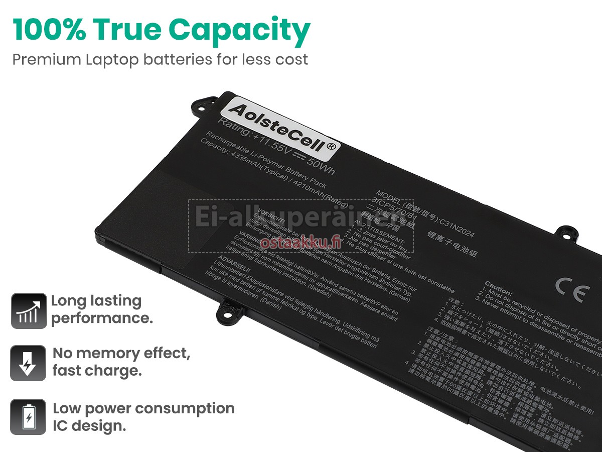 Vaihdettava akku Asus TN3604YA on uusi. Ehdottomasti ei myydä käytettyjä akku tai uudistettu. Akut ovat valmistettu parhaista solujen ja komponentteja.