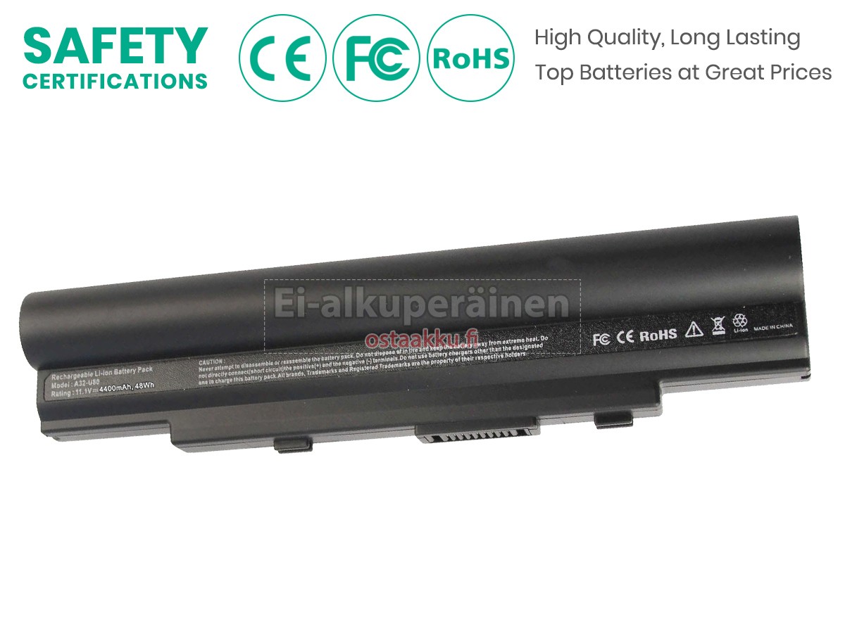 Vaihdettava akku Asus U20A on uusi. Ehdottomasti ei myydä käytettyjä akku tai uudistettu. Akut ovat valmistettu parhaista solujen ja komponentteja.