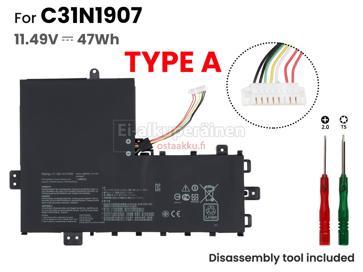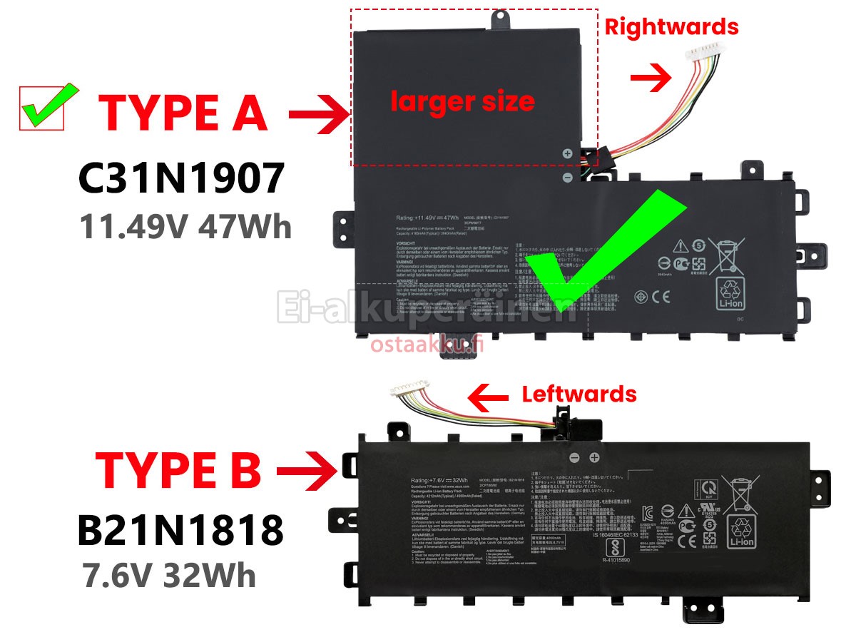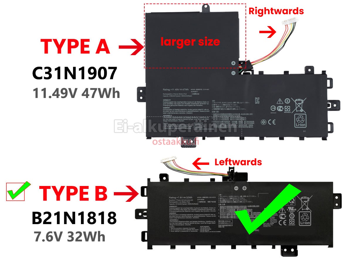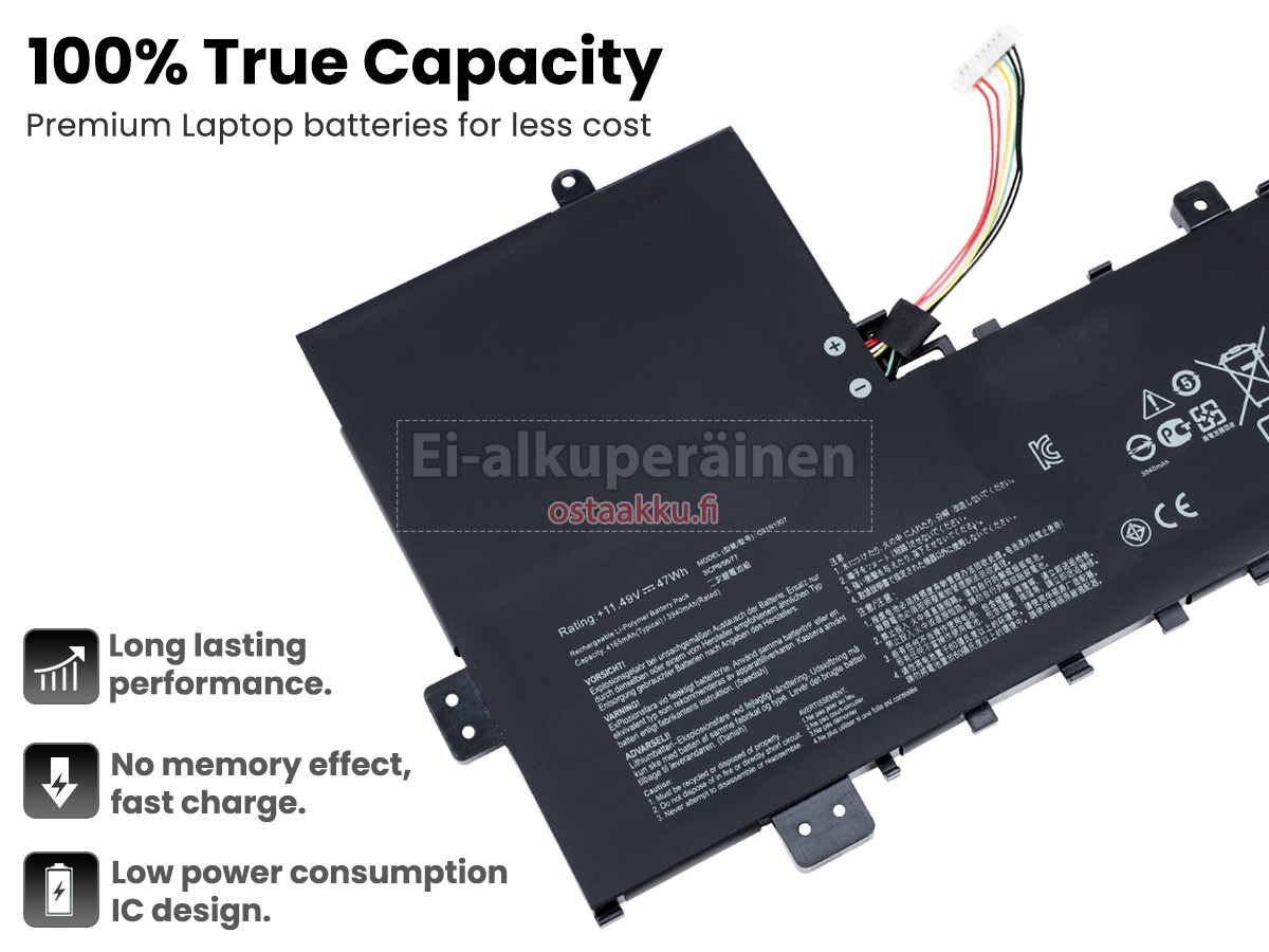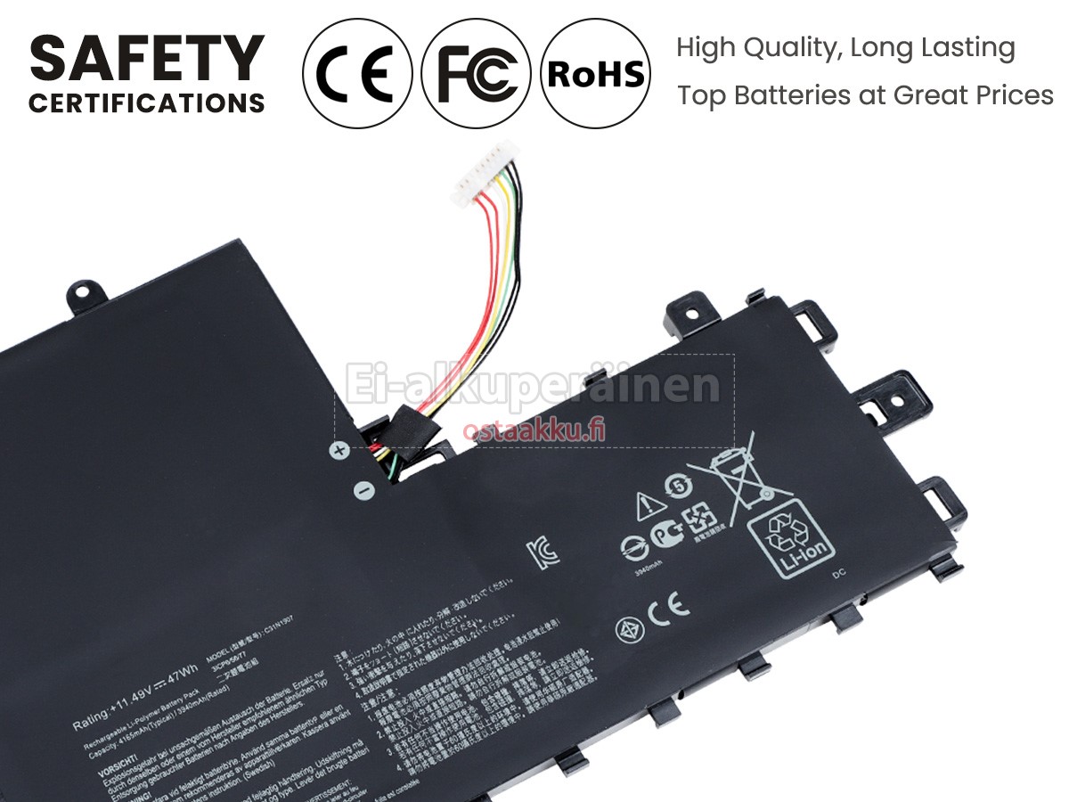 Vaihdettava akku Asus VivoBook 17 K712FA on uusi. Ehdottomasti ei myydä käytettyjä akku tai uudistettu. Akut ovat valmistettu parhaista solujen ja komponentteja.
