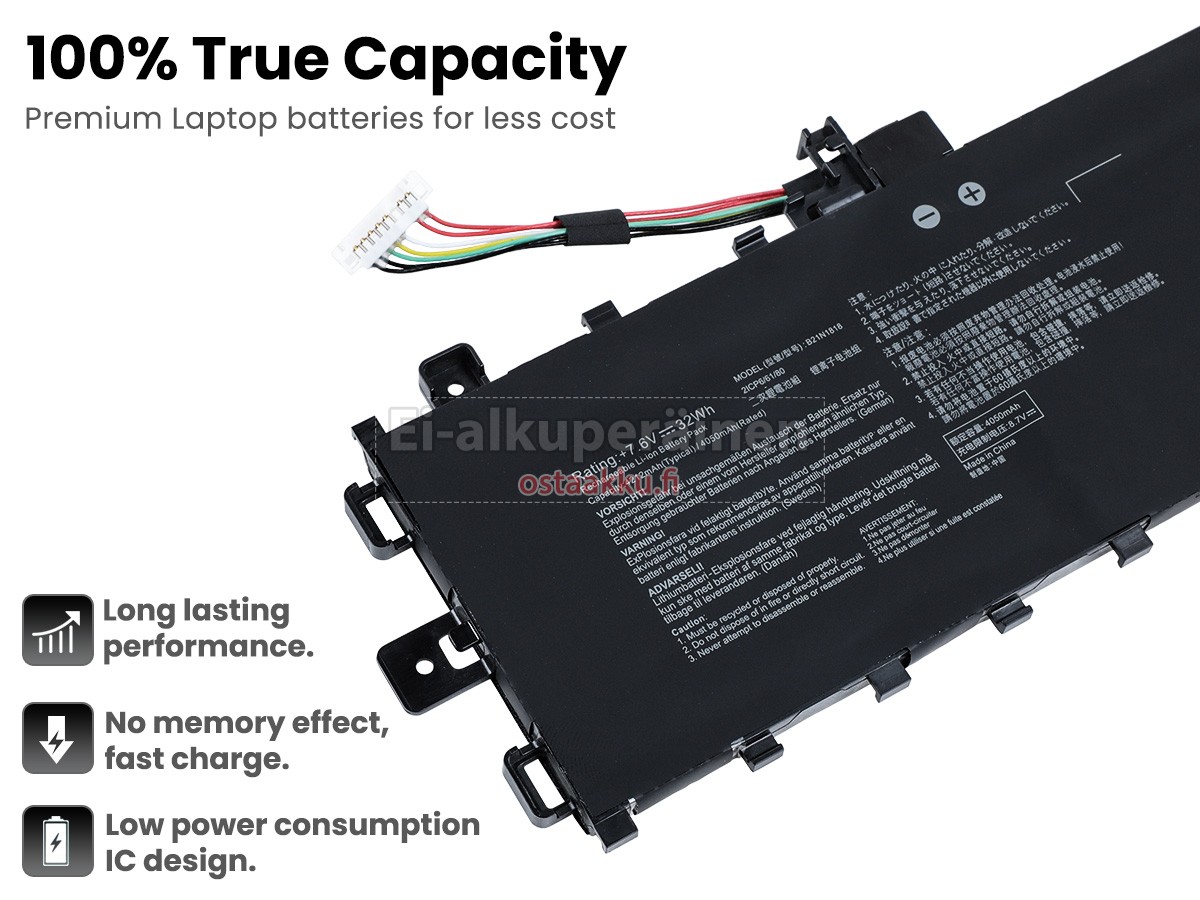 Vaihdettava akku Asus VivoBook 17 R712DK on uusi. Ehdottomasti ei myydä käytettyjä akku tai uudistettu. Akut ovat valmistettu parhaista solujen ja komponentteja.