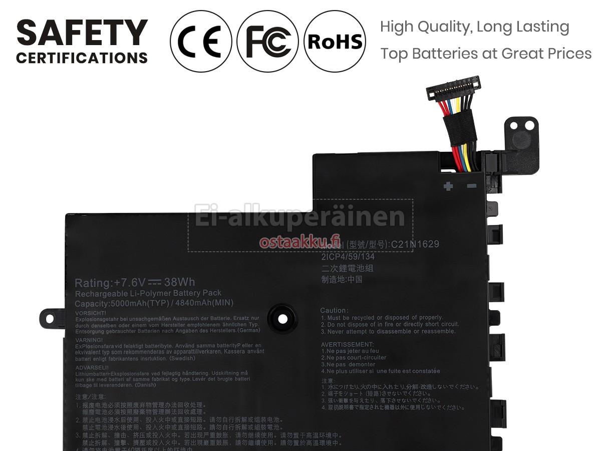 Vaihdettava akku Asus VivoBook E203MA on uusi. Ehdottomasti ei myydä käytettyjä akku tai uudistettu. Akut ovat valmistettu parhaista solujen ja komponentteja.
