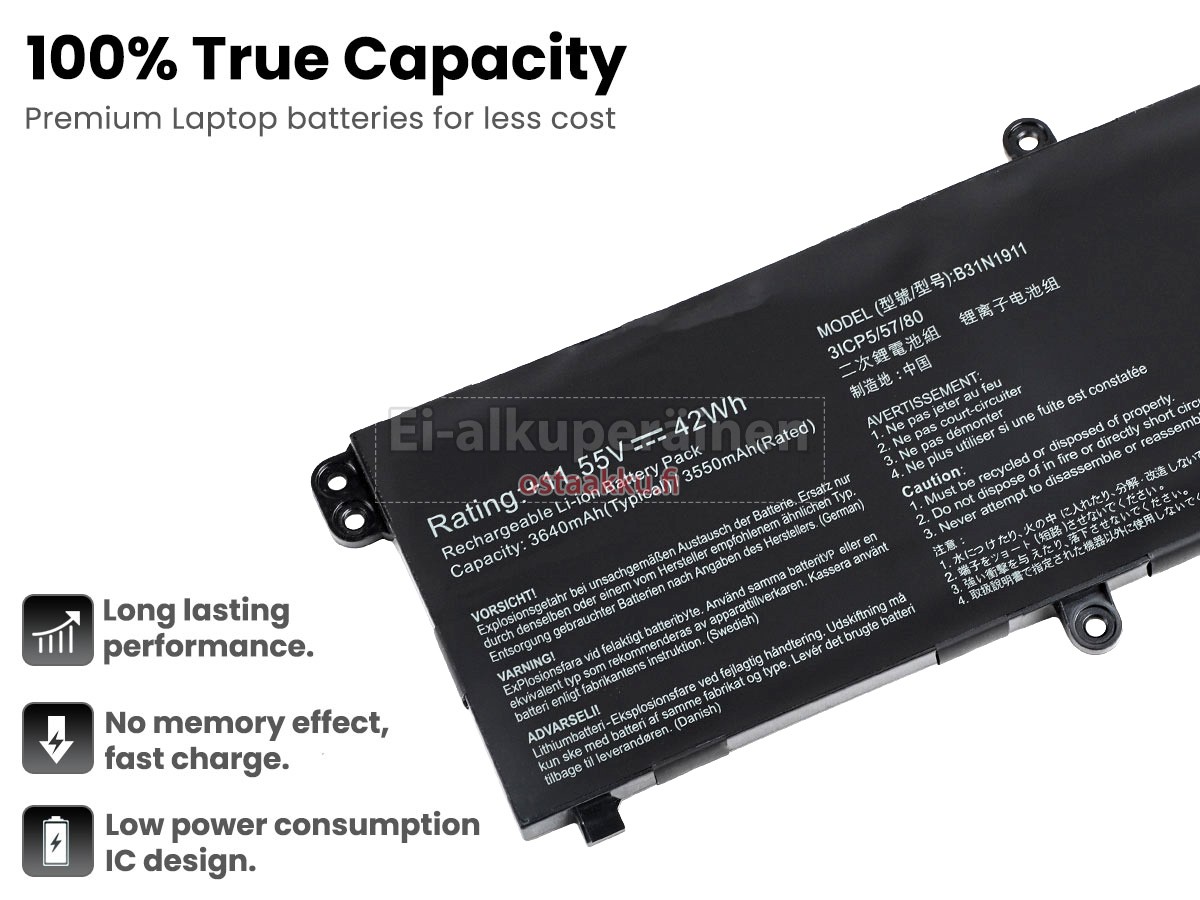 Vaihdettava akku Asus X421FP on uusi. Ehdottomasti ei myydä käytettyjä akku tai uudistettu. Akut ovat valmistettu parhaista solujen ja komponentteja.
