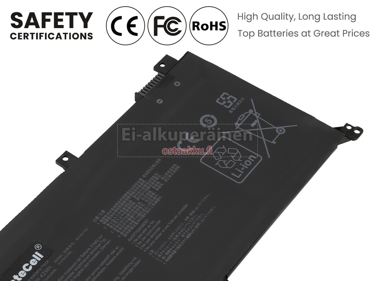Varaenergian akku uusi Asus X430FA valmistetaan hienoimmista solujen ja komponentteja. Asus X430FA akku säädetään in abc.com hyväksytyn UN38.3, RCM, CE, UL, ROHS, ISO9001/ISO9002 ja muiden kansainvälisten sertifiointia. Jotta voidaan minimoida mahdollinen turvallisuusriski ja varmistaa hyvän käyttäjäkokemuksen, tarjotaan erilaisia suojatoimia Asus X430FA Kannettavani akku kuten lämpösuojaus, virtapiirin suojaus, ylijännitesuojaus, laitteiston suojaus ja kynnyksen lähtövirran.