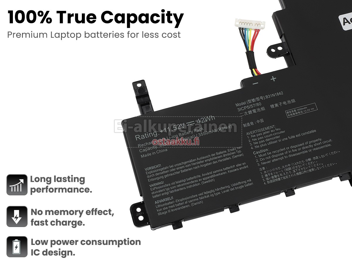 Ei muita eroja, paitsi ilman akku tuotemerkkiä. Kaikki akkuja ovat saatavilla in ostaakku.fi valmiustilassa paristot alkuperäisiä valmistajia. Hyväksyy ytimet ja älykäs soluja, kuten alkuperäisiä valmistajia, joten suorituskyky ja yhteensopivuus Asus X531FL akku on samanlainen kuin alkuperäisen akku ja paremmin. Tämä vähentää palkkion brändistä, varmistaa laadun. Monet asiakkaat ajattelevat, että alkuperäinen akku on parempi suorituskyky. Itse asiassa, kannettavani akkuja tuotemerkkejä ovat myös monet kolmannen osapuolen komponentteja (kuten Samsung, LG, jne). Kuten Kannettavani keskusyksikkö, brändin oma tietokoneyritys ei ole sitä kehittänyt.