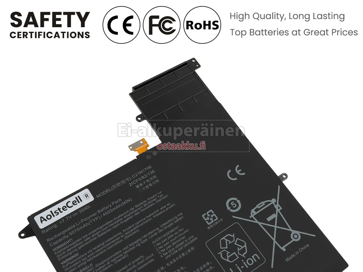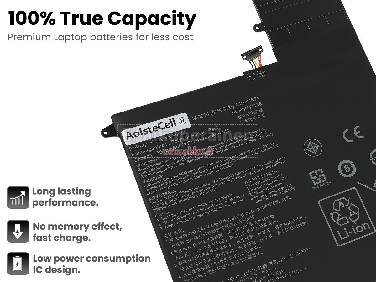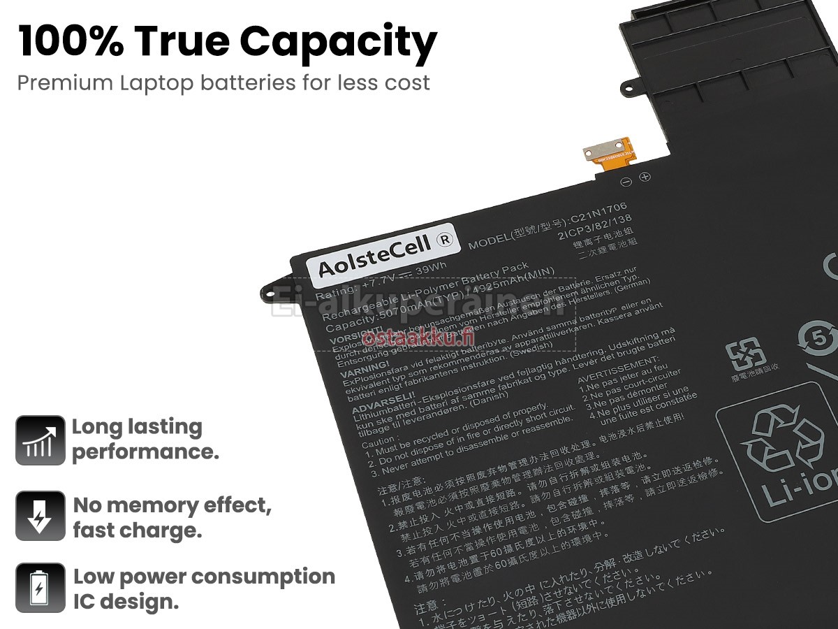 Vaihdettava akku Asus ZenBook Flip S UX370UA-C4104T on uusi. Ehdottomasti ei myydä käytettyjä akku tai uudistettu. Akut ovat valmistettu parhaista solujen ja komponentteja.