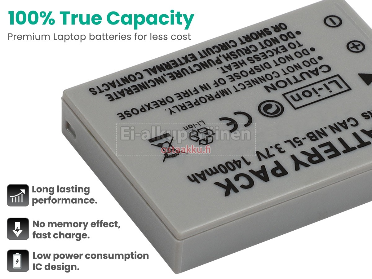 Vaihdettava akku Canon IXY DIGITAL 2000 IS on uusi. Ehdottomasti ei myydä käytettyjä akku tai uudistettu. Akut ovat valmistettu parhaista solujen ja komponentteja.
