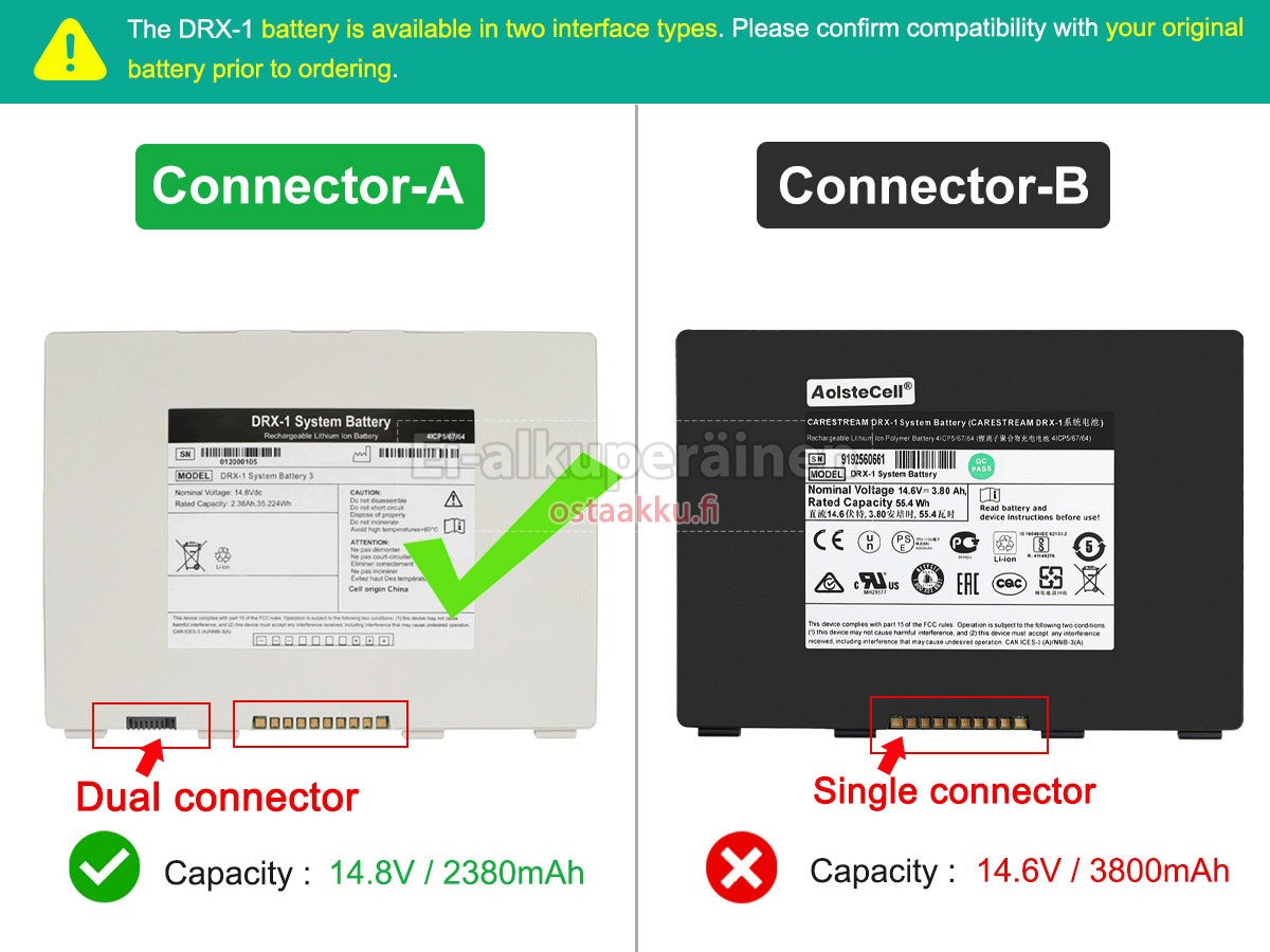 Vaihdettava akku Carestream 990864 on uusi. Ehdottomasti ei myydä käytettyjä akku tai uudistettu. Akut ovat valmistettu parhaista solujen ja komponentteja.