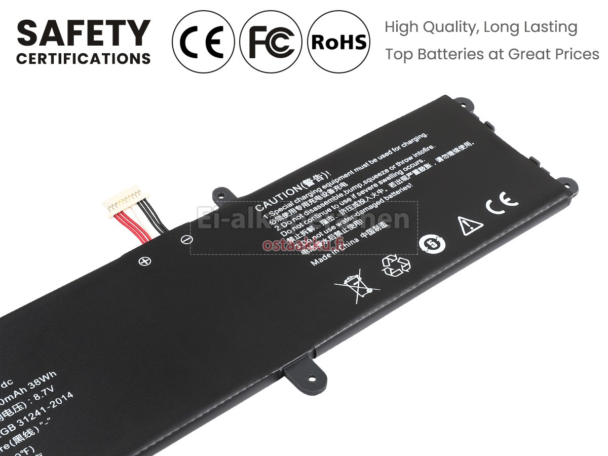 Varaenergian akku uusi CHUWI CW1557 valmistetaan hienoimmista solujen ja komponentteja. CHUWI CW1557 akku säädetään in abc.com hyväksytyn UN38.3, RCM, CE, UL, ROHS, ISO9001/ISO9002 ja muiden kansainvälisten sertifiointia. Jotta voidaan minimoida mahdollinen turvallisuusriski ja varmistaa hyvän käyttäjäkokemuksen, tarjotaan erilaisia suojatoimia CHUWI CW1557 Kannettavani akku kuten lämpösuojaus, virtapiirin suojaus, ylijännitesuojaus, laitteiston suojaus ja kynnyksen lähtövirran.