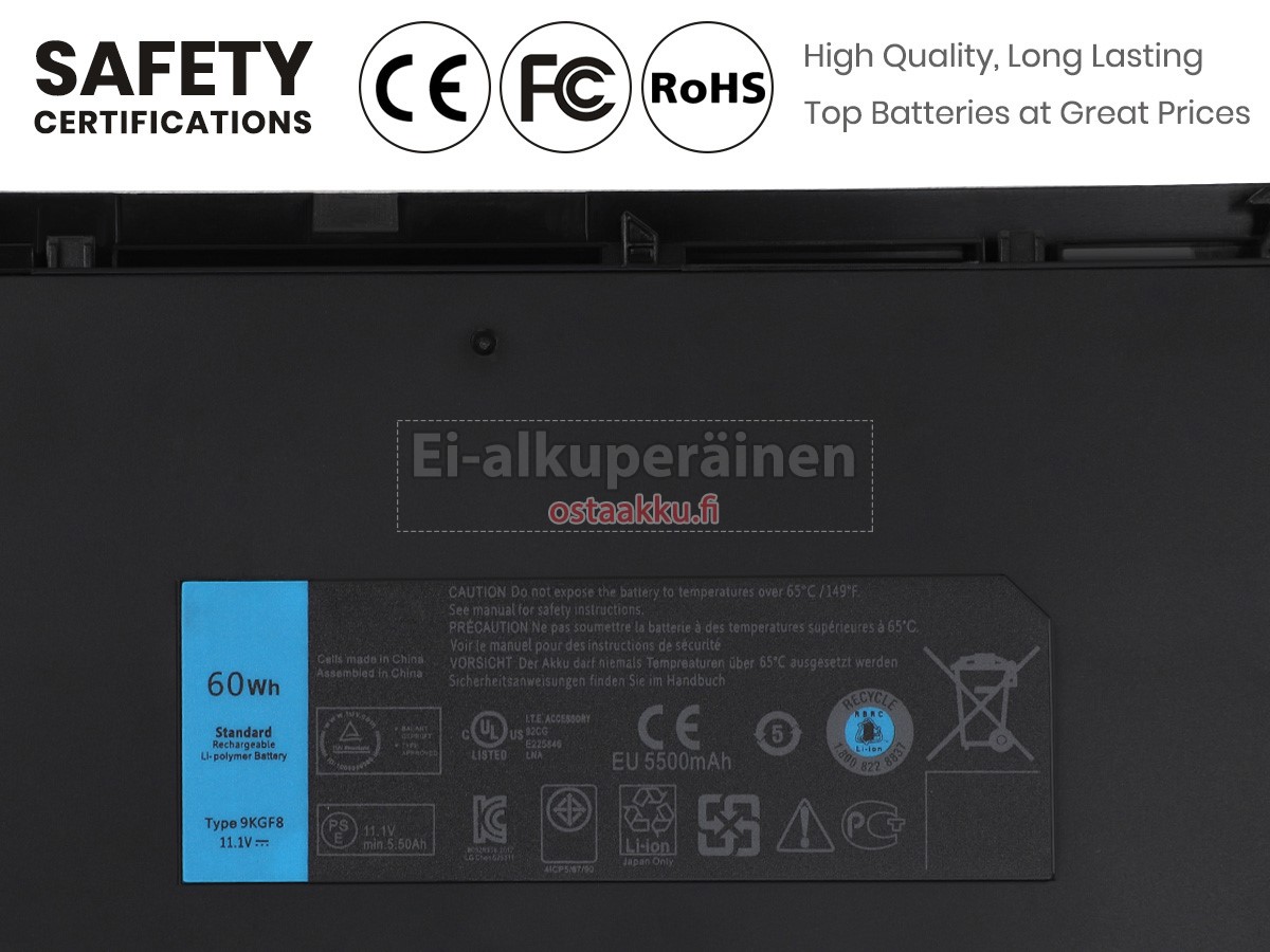 Varaenergian akku uusi Dell 312-1425 valmistetaan hienoimmista solujen ja komponentteja. Dell 312-1425 akku säädetään in abc.com hyväksytyn UN38.3, RCM, CE, UL, ROHS, ISO9001/ISO9002 ja muiden kansainvälisten sertifiointia. Jotta voidaan minimoida mahdollinen turvallisuusriski ja varmistaa hyvän käyttäjäkokemuksen, tarjotaan erilaisia suojatoimia Dell 312-1425 Kannettavani akku kuten lämpösuojaus, virtapiirin suojaus, ylijännitesuojaus, laitteiston suojaus ja kynnyksen lähtövirran.