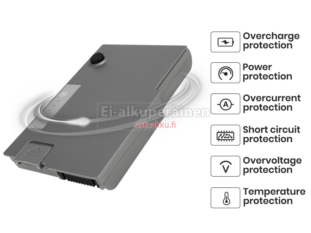 Varaenergian akku uusi Dell BAT1194 valmistetaan hienoimmista solujen ja komponentteja. Dell BAT1194 akku säädetään in abc.com hyväksytyn UN38.3, RCM, CE, UL, ROHS, ISO9001/ISO9002 ja muiden kansainvälisten sertifiointia. Jotta voidaan minimoida mahdollinen turvallisuusriski ja varmistaa hyvän käyttäjäkokemuksen, tarjotaan erilaisia suojatoimia Dell BAT1194 Kannettavani akku kuten lämpösuojaus, virtapiirin suojaus, ylijännitesuojaus, laitteiston suojaus ja kynnyksen lähtövirran.