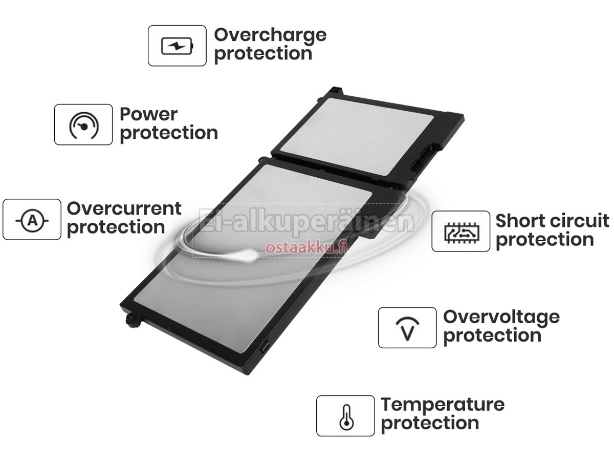 Varaenergian akku uusi Dell D4CMT valmistetaan hienoimmista solujen ja komponentteja. Dell D4CMT akku säädetään in abc.com hyväksytyn UN38.3, RCM, CE, UL, ROHS, ISO9001/ISO9002 ja muiden kansainvälisten sertifiointia. Jotta voidaan minimoida mahdollinen turvallisuusriski ja varmistaa hyvän käyttäjäkokemuksen, tarjotaan erilaisia suojatoimia Dell D4CMT Kannettavani akku kuten lämpösuojaus, virtapiirin suojaus, ylijännitesuojaus, laitteiston suojaus ja kynnyksen lähtövirran.