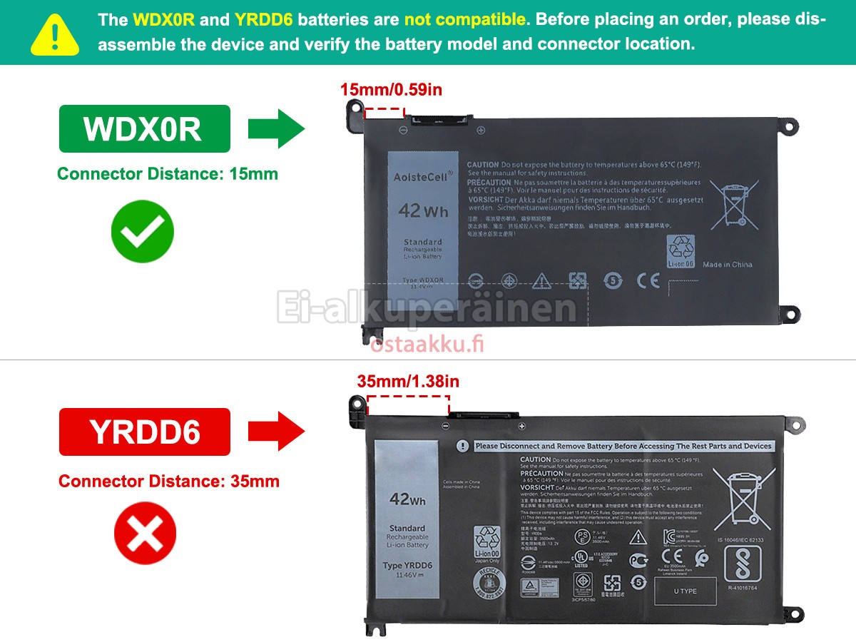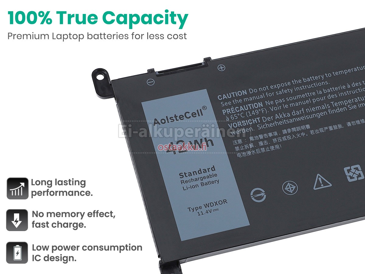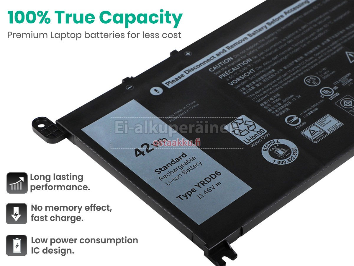 Vaihdettava akku Dell P89G003 on uusi. Ehdottomasti ei myydä käytettyjä akku tai uudistettu. Akut ovat valmistettu parhaista solujen ja komponentteja.