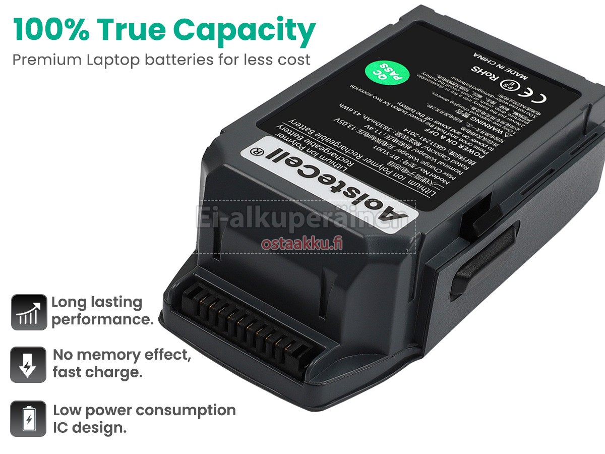 Ei muita eroja, paitsi ilman akku tuotemerkkiä. Kaikki akkuja ovat saatavilla in ostaakku.fi valmiustilassa paristot alkuperäisiä valmistajia. Hyväksyy ytimet ja älykäs soluja, kuten alkuperäisiä valmistajia, joten suorituskyky ja yhteensopivuus DJI FB1-3830MAH-11.4V akku on samanlainen kuin alkuperäisen akku ja paremmin. Tämä vähentää palkkion brändistä, varmistaa laadun. Monet asiakkaat ajattelevat, että alkuperäinen akku on parempi suorituskyky. Itse asiassa, akkuja tuotemerkkejä ovat myös monet kolmannen osapuolen komponentteja (kuten Samsung, LG, jne). Kuten keskusyksikkö, brändin oma tietokoneyritys ei ole sitä kehittänyt.