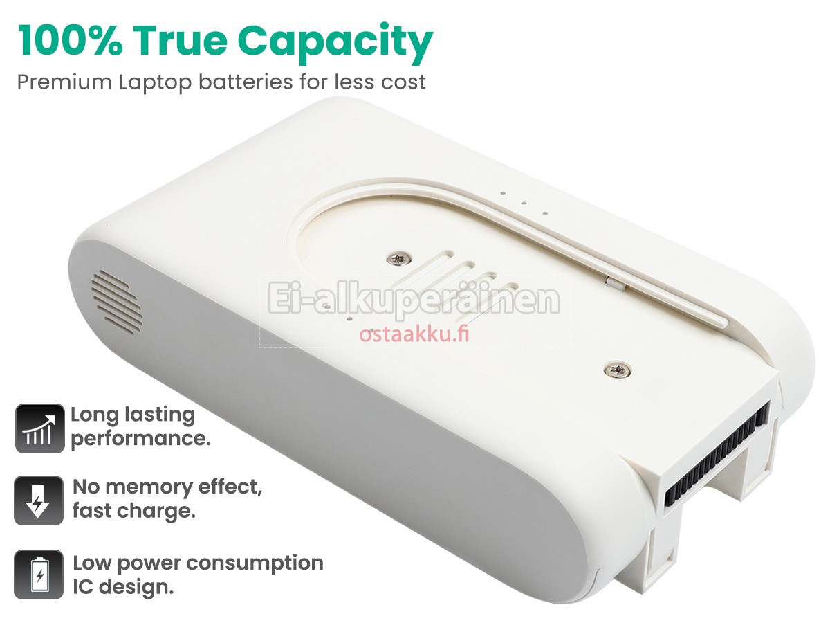 Ei muita eroja, paitsi ilman akku tuotemerkkiä. Kaikki akkuja ovat saatavilla in ostaakku.fi valmiustilassa paristot alkuperäisiä valmistajia. Hyväksyy ytimet ja älykäs soluja, kuten alkuperäisiä valmistajia, joten suorituskyky ja yhteensopivuus Dreame V2309-7S1P-BCA akku on samanlainen kuin alkuperäisen akku ja paremmin. Tämä vähentää palkkion brändistä, varmistaa laadun. Monet asiakkaat ajattelevat, että alkuperäinen akku on parempi suorituskyky. Itse asiassa, pölynimurin akkuja tuotemerkkejä ovat myös monet kolmannen osapuolen komponentteja (kuten Samsung, LG, jne). Kuten pölynimurin keskusyksikkö, brändin oma tietokoneyritys ei ole sitä kehittänyt.