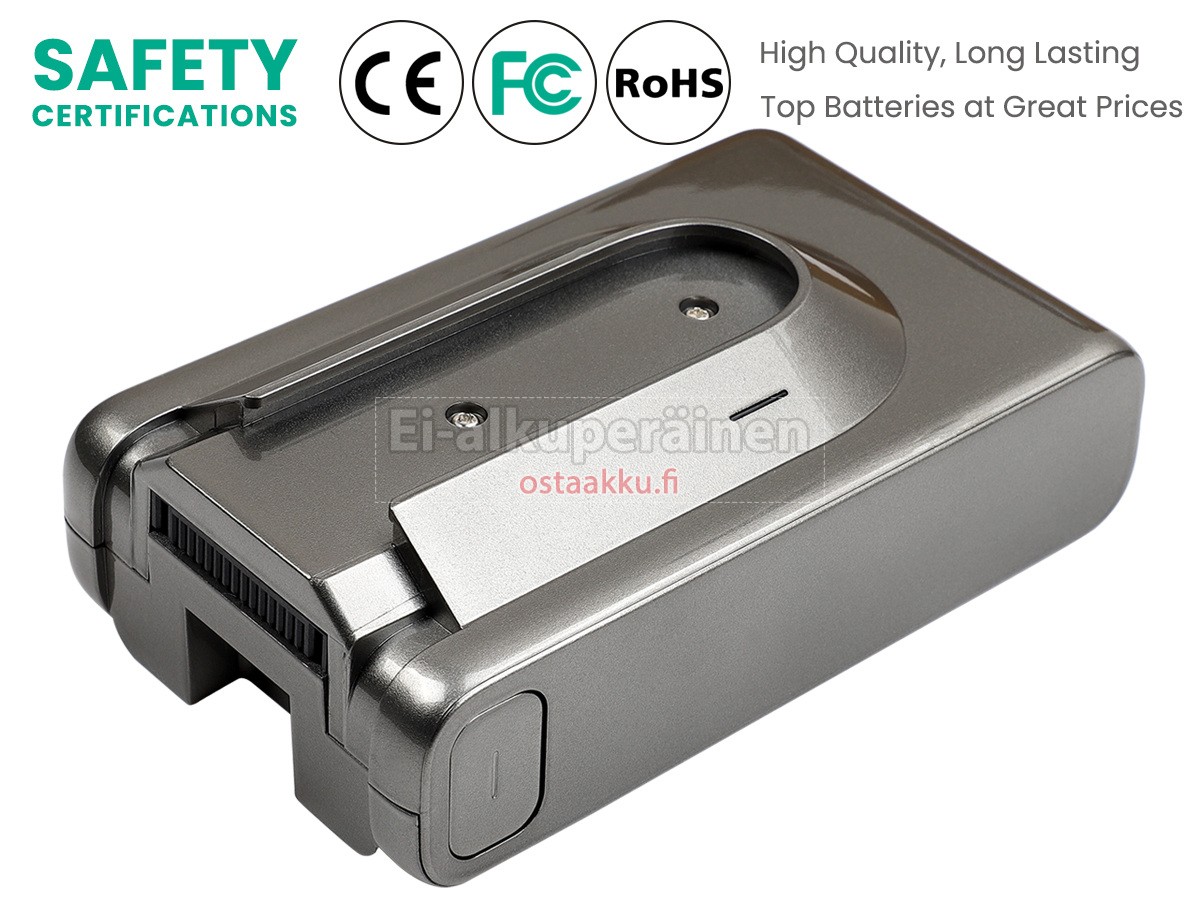Varaenergian akku uusi Dreame VTT1 valmistetaan hienoimmista solujen ja komponentteja. Dreame VTT1 akku säädetään in abc.com hyväksytyn UN38.3, RCM, CE, UL, ROHS, ISO9001/ISO9002 ja muiden kansainvälisten sertifiointia. Jotta voidaan minimoida mahdollinen turvallisuusriski ja varmistaa hyvän käyttäjäkokemuksen, tarjotaan erilaisia suojatoimia Dreame VTT1 pölynimurin akku kuten lämpösuojaus, virtapiirin suojaus, ylijännitesuojaus, laitteiston suojaus ja kynnyksen lähtövirran.
