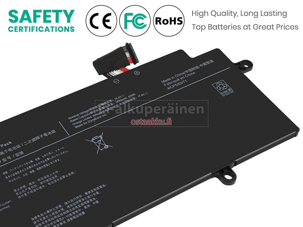 Vaihdettava akku Dynabook PORTEGE X30W-J-11N on uusi. Ehdottomasti ei myydä käytettyjä akku tai uudistettu. Akut ovat valmistettu parhaista solujen ja komponentteja.