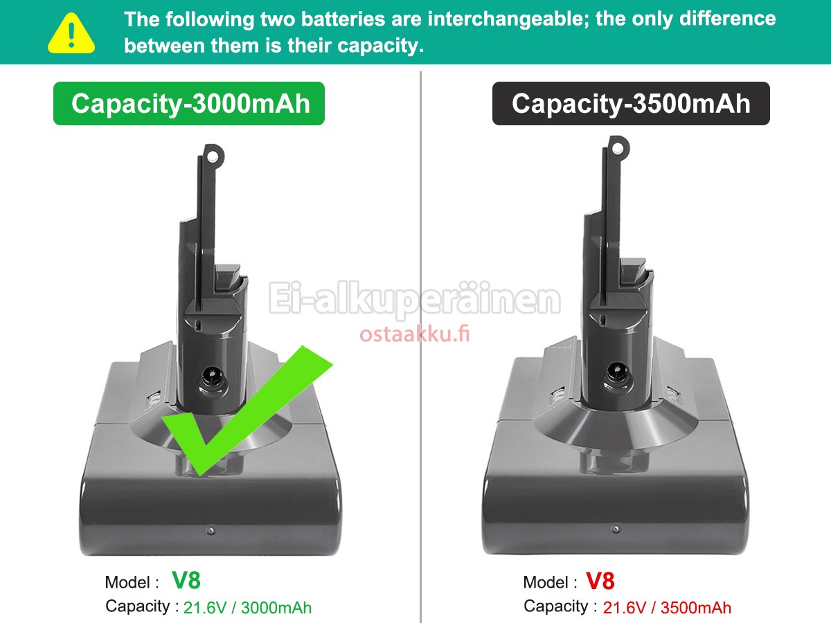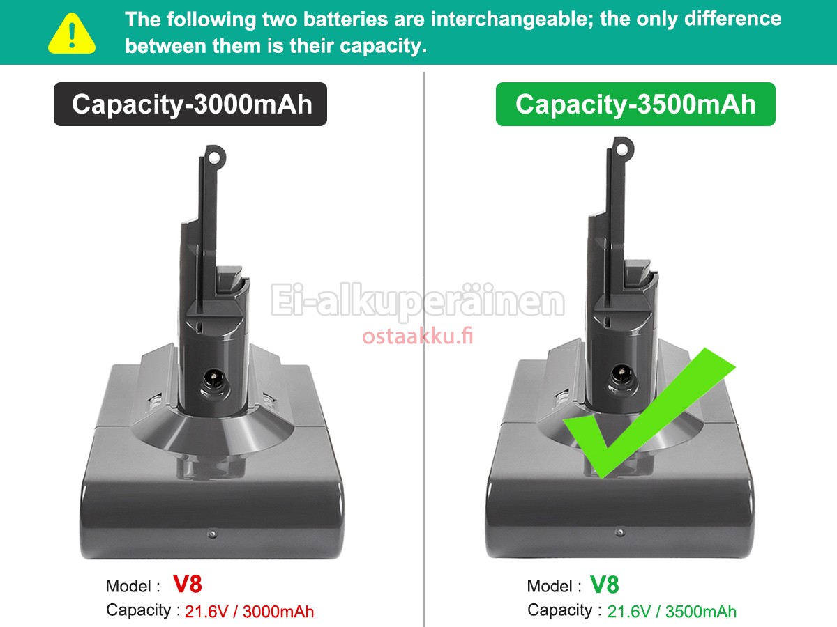 Ei muita eroja, paitsi ilman akku tuotemerkkiä. Kaikki akkuja ovat saatavilla in ostaakku.fi valmiustilassa paristot alkuperäisiä valmistajia. Hyväksyy ytimet ja älykäs soluja, kuten alkuperäisiä valmistajia, joten suorituskyky ja yhteensopivuus Dyson 8895-02 akku on samanlainen kuin alkuperäisen akku ja paremmin. Tämä vähentää palkkion brändistä, varmistaa laadun. Monet asiakkaat ajattelevat, että alkuperäinen akku on parempi suorituskyky. Itse asiassa, pölynimurin akkuja tuotemerkkejä ovat myös monet kolmannen osapuolen komponentteja (kuten Samsung, LG, jne). Kuten pölynimurin keskusyksikkö, brändin oma tietokoneyritys ei ole sitä kehittänyt.