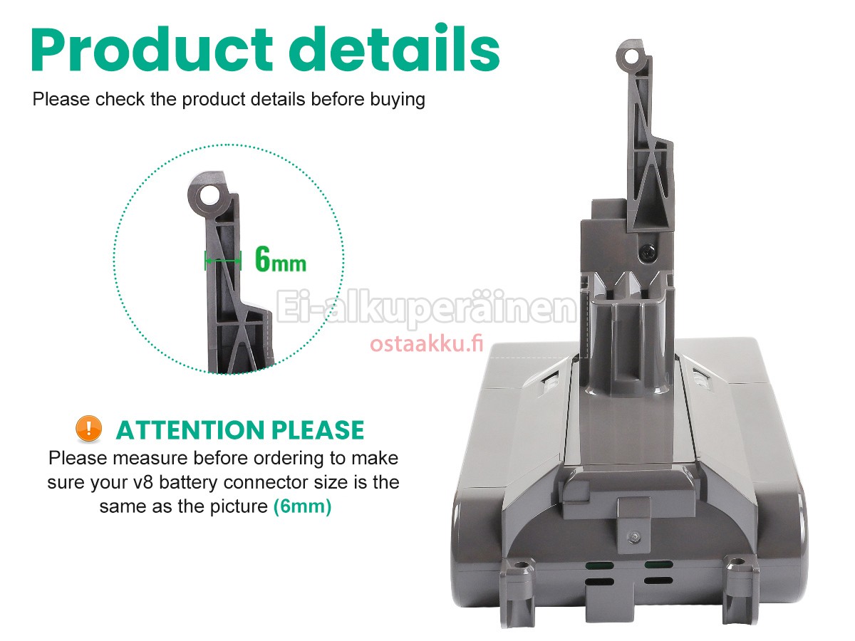Vaihdettava akku Dyson 8895-02 on uusi. Ehdottomasti ei myydä käytettyjä akku tai uudistettu. Akut ovat valmistettu parhaista solujen ja komponentteja.