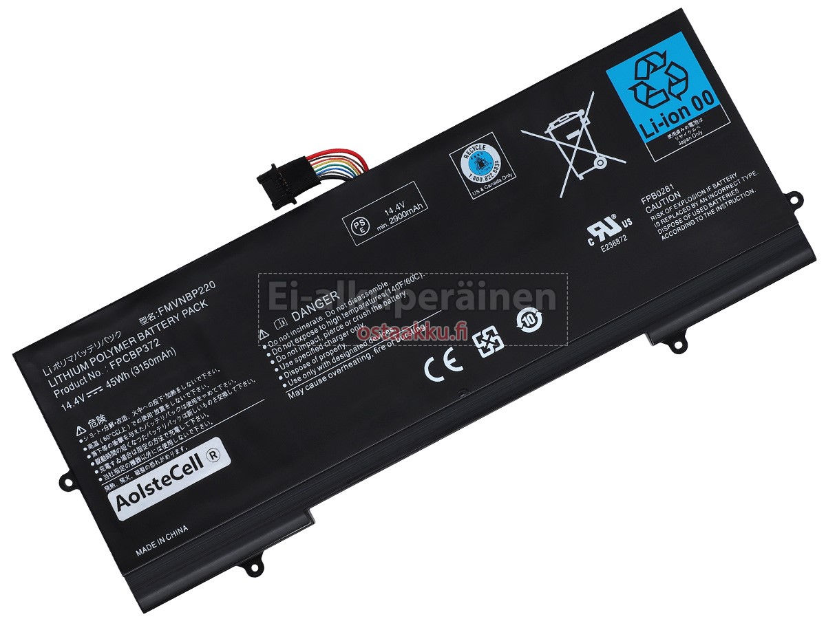 Varaenergian akku uusi Fujitsu FMVNBP220 valmistetaan hienoimmista solujen ja komponentteja. Fujitsu FMVNBP220 akku säädetään in abc.com hyväksytyn UN38.3, RCM, CE, UL, ROHS, ISO9001/ISO9002 ja muiden kansainvälisten sertifiointia. Jotta voidaan minimoida mahdollinen turvallisuusriski ja varmistaa hyvän käyttäjäkokemuksen, tarjotaan erilaisia suojatoimia Fujitsu FMVNBP220 Kannettavani akku kuten lämpösuojaus, virtapiirin suojaus, ylijännitesuojaus, laitteiston suojaus ja kynnyksen lähtövirran.