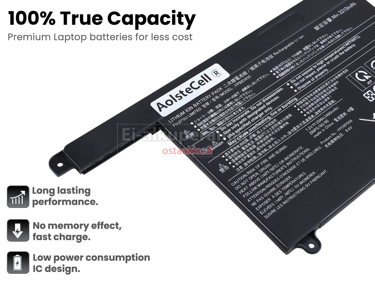 Vaihdettava akku Fujitsu FMVU75EUV3 on uusi. Ehdottomasti ei myydä käytettyjä akku tai uudistettu. Akut ovat valmistettu parhaista solujen ja komponentteja.