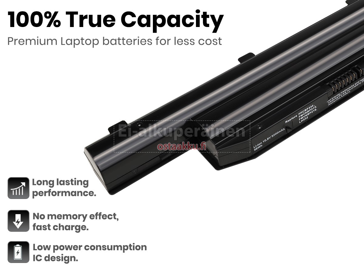 Ei muita eroja, paitsi ilman akku tuotemerkkiä. Kaikki akkuja ovat saatavilla in ostaakku.fi valmiustilassa paristot alkuperäisiä valmistajia. Hyväksyy ytimet ja älykäs soluja, kuten alkuperäisiä valmistajia, joten suorituskyky ja yhteensopivuus Fujitsu FPCBP334 akku on samanlainen kuin alkuperäisen akku ja paremmin. Tämä vähentää palkkion brändistä, varmistaa laadun. Monet asiakkaat ajattelevat, että alkuperäinen akku on parempi suorituskyky. Itse asiassa, kannettavani akkuja tuotemerkkejä ovat myös monet kolmannen osapuolen komponentteja (kuten Samsung, LG, jne). Kuten Kannettavani keskusyksikkö, brändin oma tietokoneyritys ei ole sitä kehittänyt.