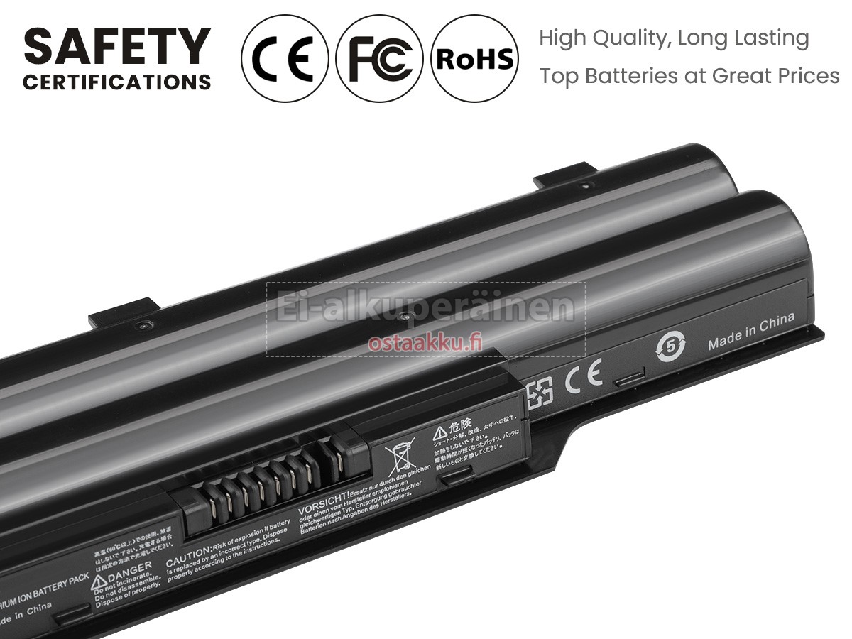 Varaenergian akku uusi Fujitsu FPCBP347AP valmistetaan hienoimmista solujen ja komponentteja. Fujitsu FPCBP347AP akku säädetään in abc.com hyväksytyn UN38.3, RCM, CE, UL, ROHS, ISO9001/ISO9002 ja muiden kansainvälisten sertifiointia. Jotta voidaan minimoida mahdollinen turvallisuusriski ja varmistaa hyvän käyttäjäkokemuksen, tarjotaan erilaisia suojatoimia Fujitsu FPCBP347AP Kannettavani akku kuten lämpösuojaus, virtapiirin suojaus, ylijännitesuojaus, laitteiston suojaus ja kynnyksen lähtövirran.