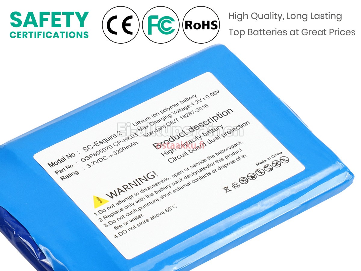 Varaenergian akku uusi Harman Kardon ESQUIRE 2 valmistetaan hienoimmista solujen ja komponentteja. Harman Kardon ESQUIRE 2 akku säädetään in abc.com hyväksytyn UN38.3, RCM, CE, UL, ROHS, ISO9001/ISO9002 ja muiden kansainvälisten sertifiointia. Jotta voidaan minimoida mahdollinen turvallisuusriski ja varmistaa hyvän käyttäjäkokemuksen, tarjotaan erilaisia suojatoimia Harman Kardon ESQUIRE 2 ääni akku kuten lämpösuojaus, virtapiirin suojaus, ylijännitesuojaus, laitteiston suojaus ja kynnyksen lähtövirran.