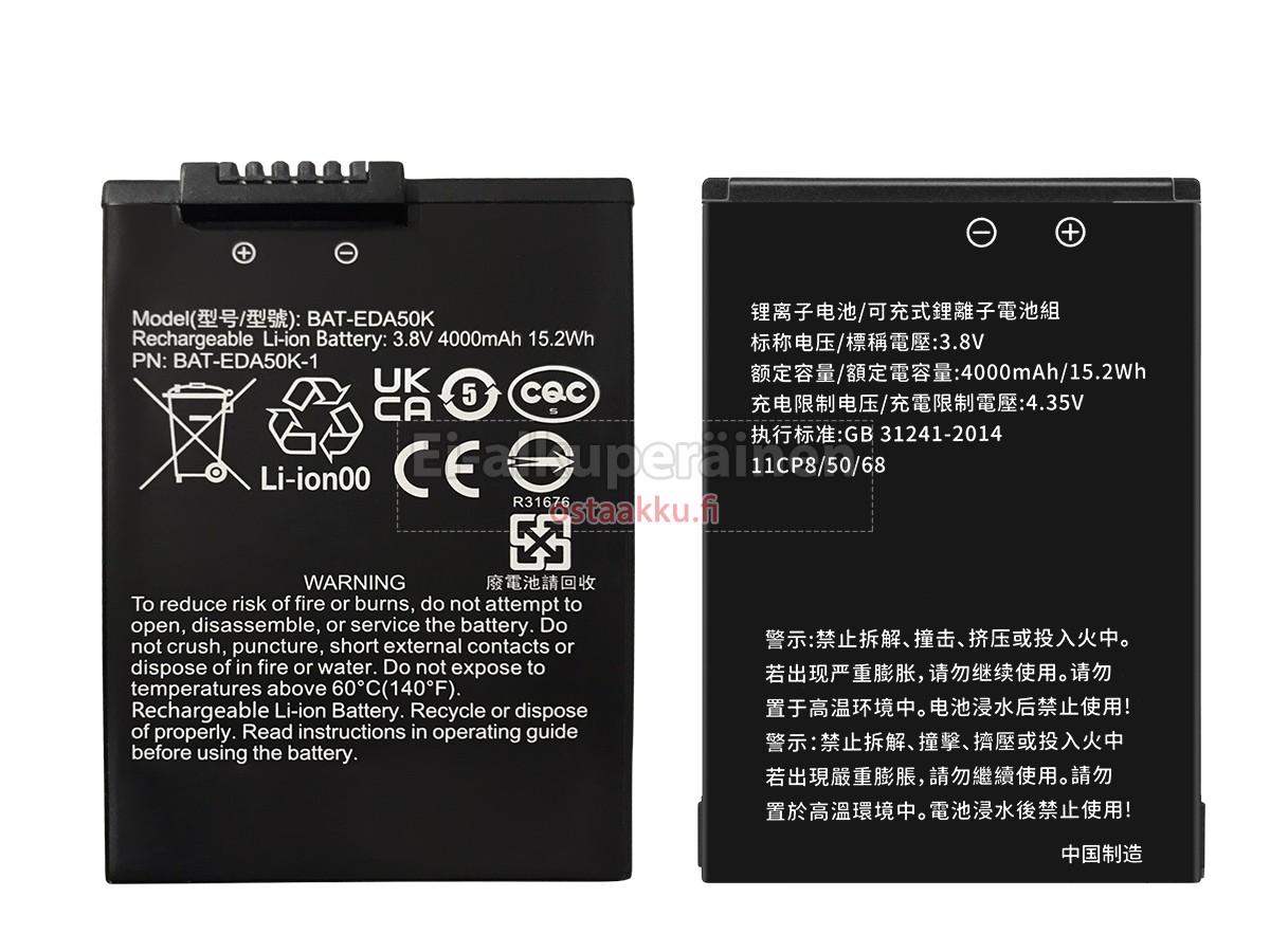 Vaihdettava akku Honeywell BAT-EDA50K-1 on uusi. Ehdottomasti ei myydä käytettyjä akku tai uudistettu. Akut ovat valmistettu parhaista solujen ja komponentteja.