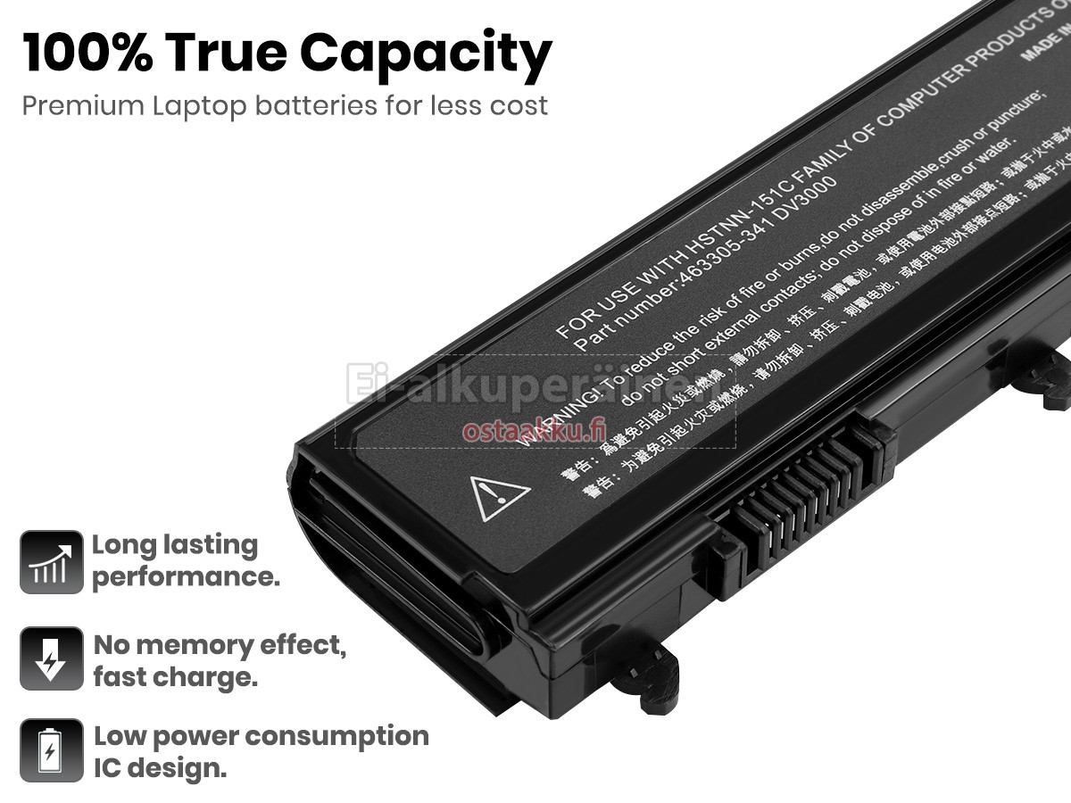 Ei muita eroja, paitsi ilman akku tuotemerkkiä. Kaikki akkuja ovat saatavilla in ostaakku.fi valmiustilassa paristot alkuperäisiä valmistajia. Hyväksyy ytimet ja älykäs soluja, kuten alkuperäisiä valmistajia, joten suorituskyky ja yhteensopivuus HP 463305-762 akku on samanlainen kuin alkuperäisen akku ja paremmin. Tämä vähentää palkkion brändistä, varmistaa laadun. Monet asiakkaat ajattelevat, että alkuperäinen akku on parempi suorituskyky. Itse asiassa, kannettavani akkuja tuotemerkkejä ovat myös monet kolmannen osapuolen komponentteja (kuten Samsung, LG, jne). Kuten Kannettavani keskusyksikkö, brändin oma tietokoneyritys ei ole sitä kehittänyt.