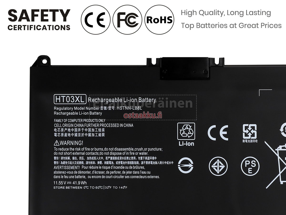 Varaenergian akku uusi HP L32535-141 valmistetaan hienoimmista solujen ja komponentteja. HP L32535-141 akku säädetään in abc.com hyväksytyn UN38.3, RCM, CE, UL, ROHS, ISO9001/ISO9002 ja muiden kansainvälisten sertifiointia. Jotta voidaan minimoida mahdollinen turvallisuusriski ja varmistaa hyvän käyttäjäkokemuksen, tarjotaan erilaisia suojatoimia HP L32535-141 Kannettavani akku kuten lämpösuojaus, virtapiirin suojaus, ylijännitesuojaus, laitteiston suojaus ja kynnyksen lähtövirran.
