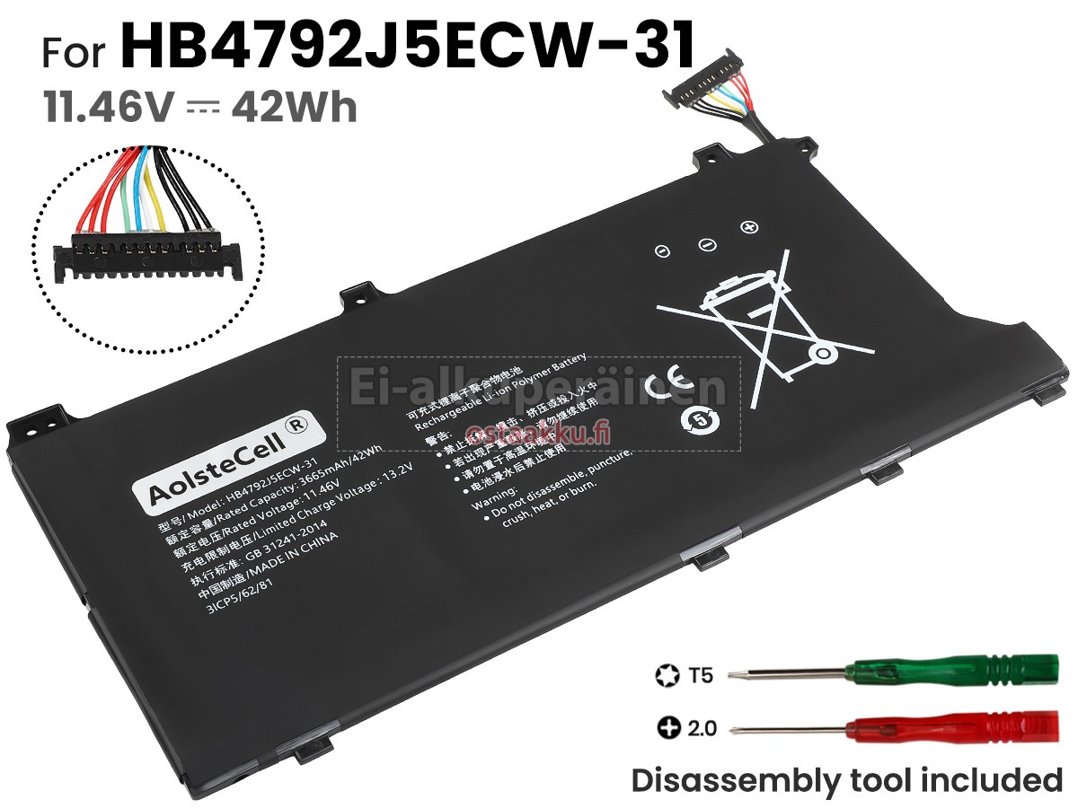 Vaihdettava akku Huawei BBR-WAH9 on uusi. Ehdottomasti ei myydä käytettyjä akku tai uudistettu. Akut ovat valmistettu parhaista solujen ja komponentteja.