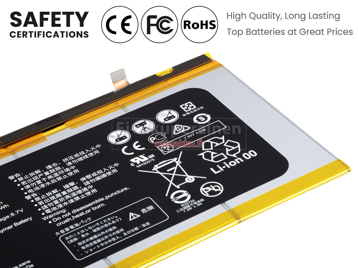 Vaihdettava akku Huawei HZ-W19 on uusi. Ehdottomasti ei myydä käytettyjä akku tai uudistettu. Akut ovat valmistettu parhaista solujen ja komponentteja.