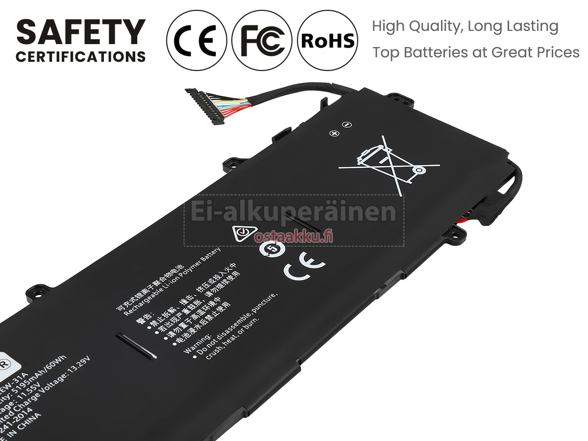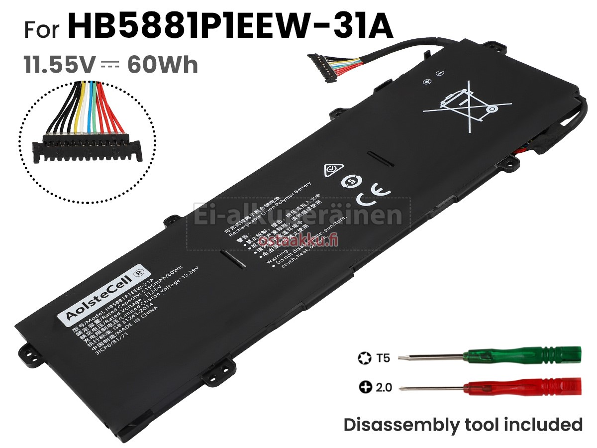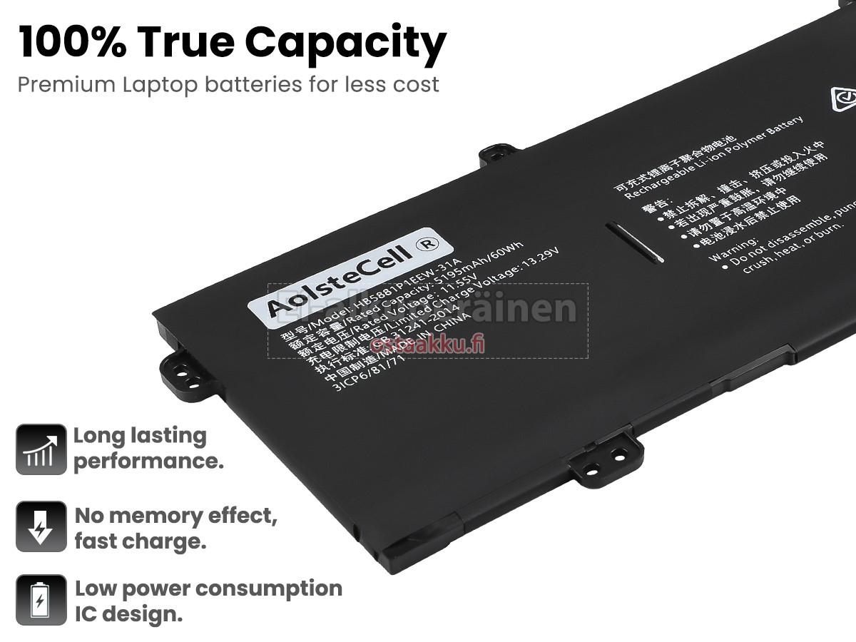 Vaihdettava akku Huawei MAGICBOOK V14 2022 on uusi. Ehdottomasti ei myydä käytettyjä akku tai uudistettu. Akut ovat valmistettu parhaista solujen ja komponentteja.