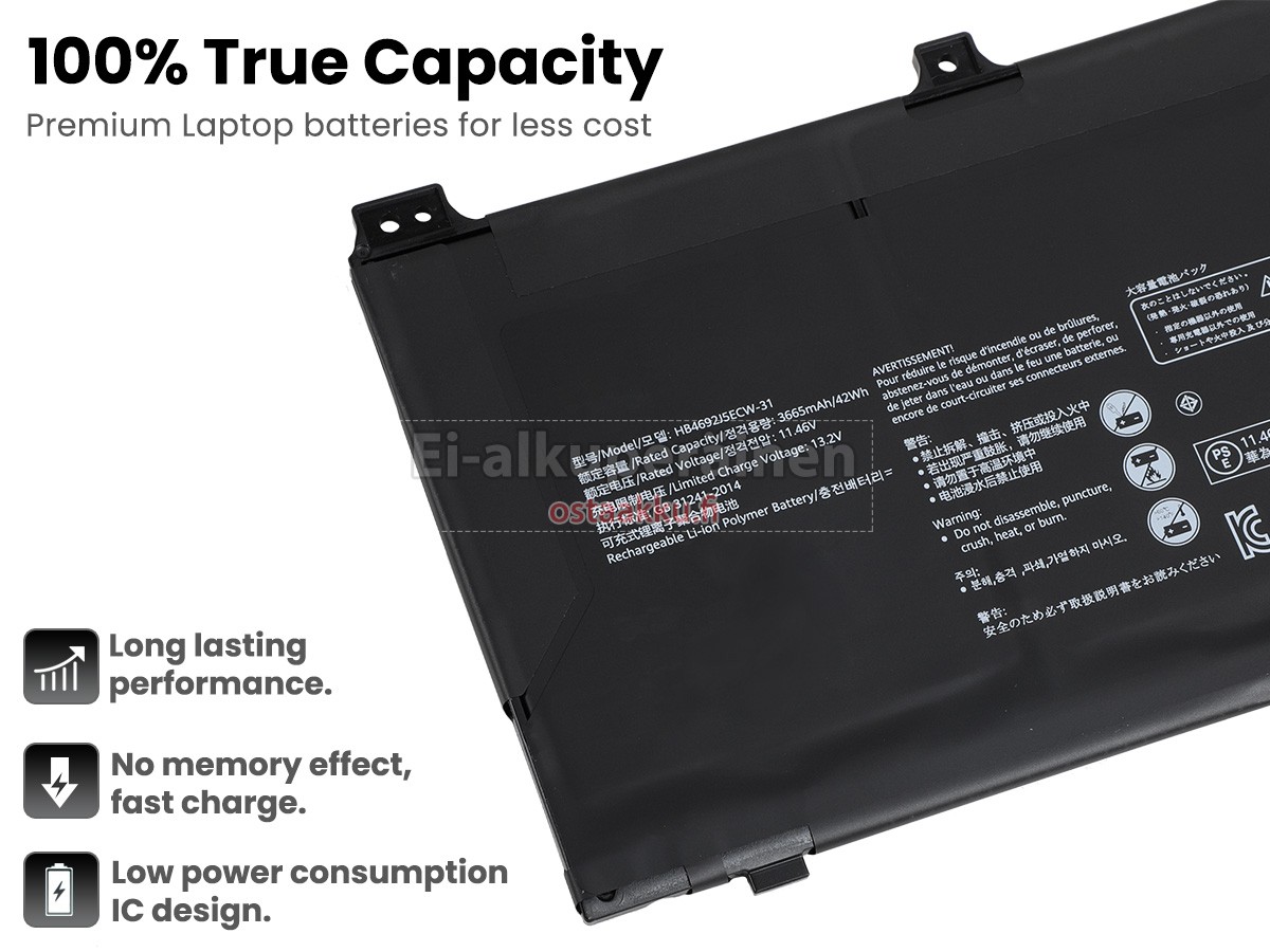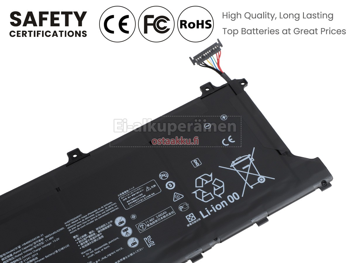 Vaihdettava akku Huawei MATEBOOK D15 (2020) on uusi. Ehdottomasti ei myydä käytettyjä akku tai uudistettu. Akut ovat valmistettu parhaista solujen ja komponentteja.
