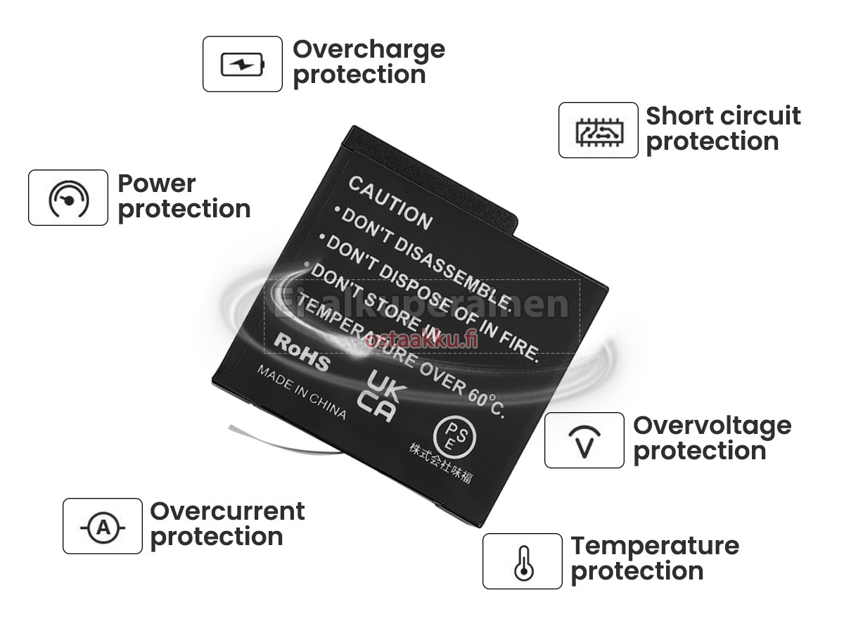 Varaenergian akku uusi Insta360 ACE PRO-001 valmistetaan hienoimmista solujen ja komponentteja. Insta360 ACE PRO-001 akku säädetään in abc.com hyväksytyn UN38.3, RCM, CE, UL, ROHS, ISO9001/ISO9002 ja muiden kansainvälisten sertifiointia. Jotta voidaan minimoida mahdollinen turvallisuusriski ja varmistaa hyvän käyttäjäkokemuksen, tarjotaan erilaisia suojatoimia Insta360 ACE PRO-001 akku kuten lämpösuojaus, virtapiirin suojaus, ylijännitesuojaus, laitteiston suojaus ja kynnyksen lähtövirran.