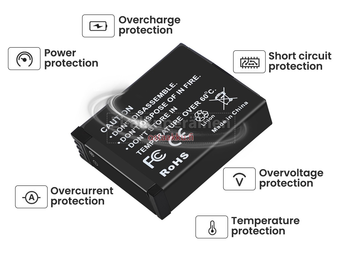 Varaenergian akku uusi Insta360 IS360XB valmistetaan hienoimmista solujen ja komponentteja. Insta360 IS360XB akku säädetään in abc.com hyväksytyn UN38.3, RCM, CE, UL, ROHS, ISO9001/ISO9002 ja muiden kansainvälisten sertifiointia. Jotta voidaan minimoida mahdollinen turvallisuusriski ja varmistaa hyvän käyttäjäkokemuksen, tarjotaan erilaisia suojatoimia Insta360 IS360XB akku kuten lämpösuojaus, virtapiirin suojaus, ylijännitesuojaus, laitteiston suojaus ja kynnyksen lähtövirran.