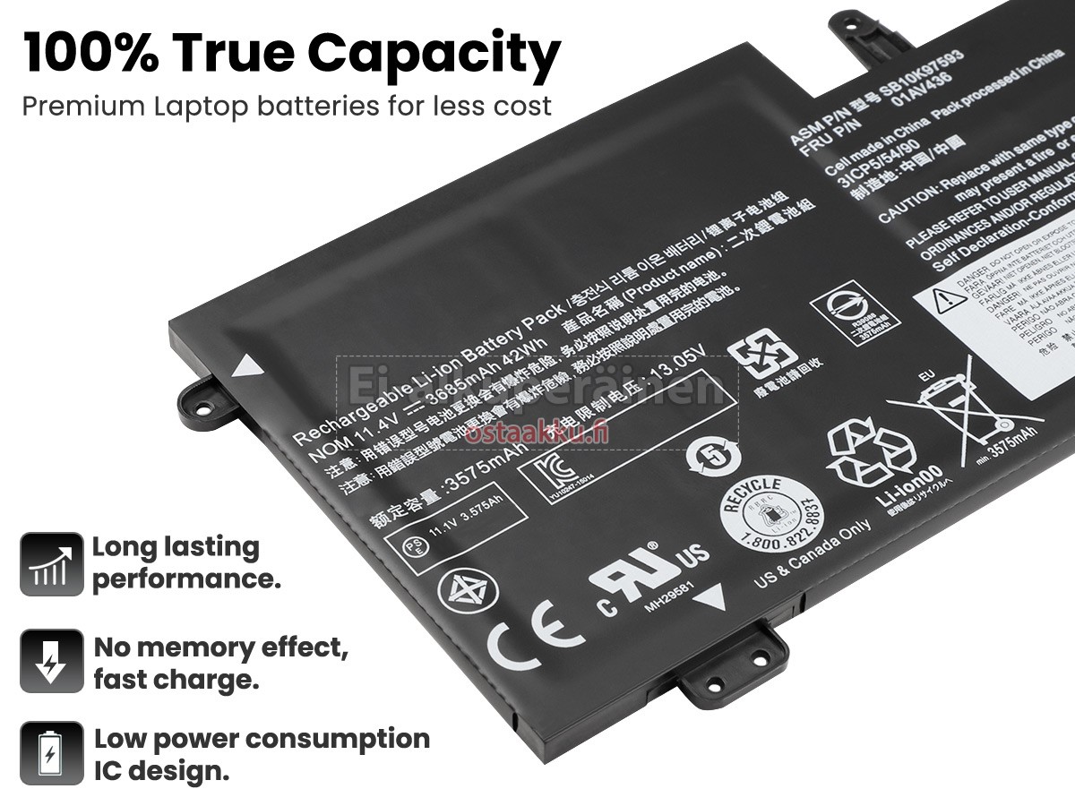 Vaihdettava akku Lenovo 01AV401 on uusi. Ehdottomasti ei myydä käytettyjä akku tai uudistettu. Akut ovat valmistettu parhaista solujen ja komponentteja.