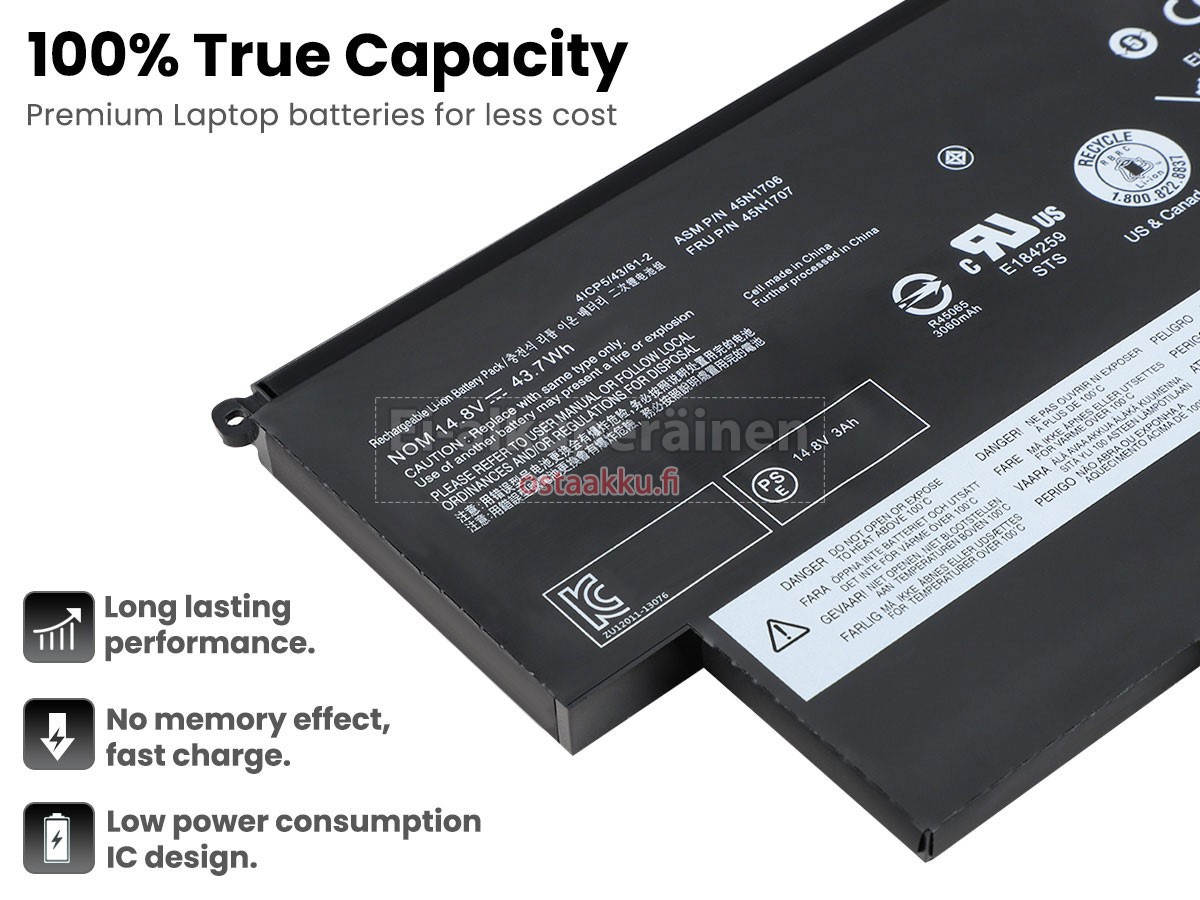 Vaihdettava akku Lenovo 45N1707 on uusi. Ehdottomasti ei myydä käytettyjä akku tai uudistettu. Akut ovat valmistettu parhaista solujen ja komponentteja.