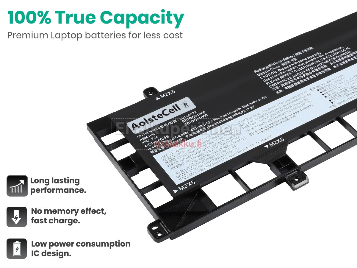 Vaihdettava akku Lenovo 5B10W51868 on uusi. Ehdottomasti ei myydä käytettyjä akku tai uudistettu. Akut ovat valmistettu parhaista solujen ja komponentteja.