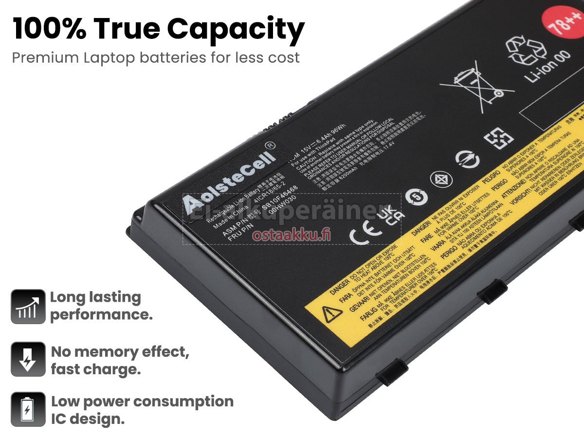 Varaenergian akku uusi Lenovo 78+ valmistetaan hienoimmista solujen ja komponentteja. Lenovo 78+ akku säädetään in abc.com hyväksytyn UN38.3, RCM, CE, UL, ROHS, ISO9001/ISO9002 ja muiden kansainvälisten sertifiointia. Jotta voidaan minimoida mahdollinen turvallisuusriski ja varmistaa hyvän käyttäjäkokemuksen, tarjotaan erilaisia suojatoimia Lenovo 78+ Kannettavani akku kuten lämpösuojaus, virtapiirin suojaus, ylijännitesuojaus, laitteiston suojaus ja kynnyksen lähtövirran.