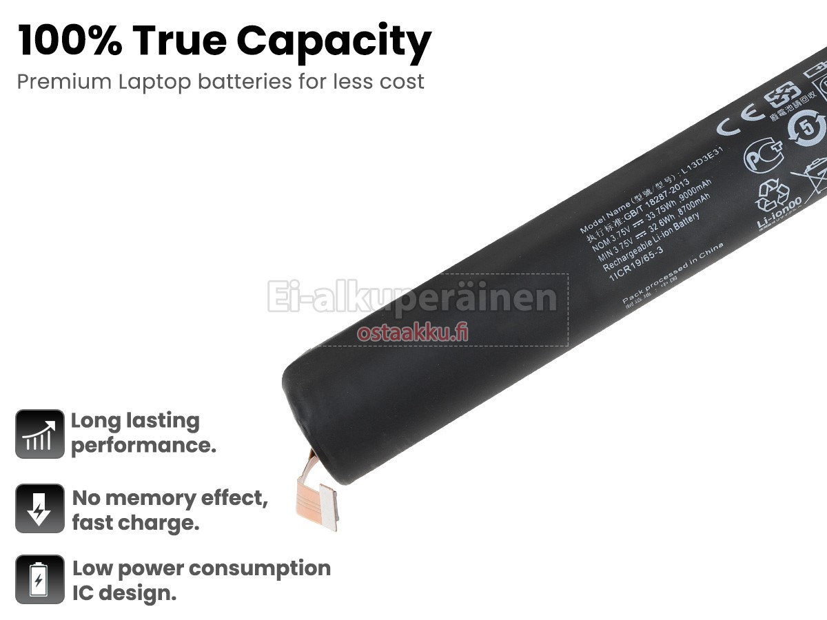 Ei muita eroja, paitsi ilman akku tuotemerkkiä. Kaikki akkuja ovat saatavilla in ostaakku.fi valmiustilassa paristot alkuperäisiä valmistajia. Hyväksyy ytimet ja älykäs soluja, kuten alkuperäisiä valmistajia, joten suorituskyky ja yhteensopivuus Lenovo L13D3E31 akku on samanlainen kuin alkuperäisen akku ja paremmin. Tämä vähentää palkkion brändistä, varmistaa laadun. Monet asiakkaat ajattelevat, että alkuperäinen akku on parempi suorituskyky. Itse asiassa, kannettavani akkuja tuotemerkkejä ovat myös monet kolmannen osapuolen komponentteja (kuten Samsung, LG, jne). Kuten Kannettavani keskusyksikkö, brändin oma tietokoneyritys ei ole sitä kehittänyt.