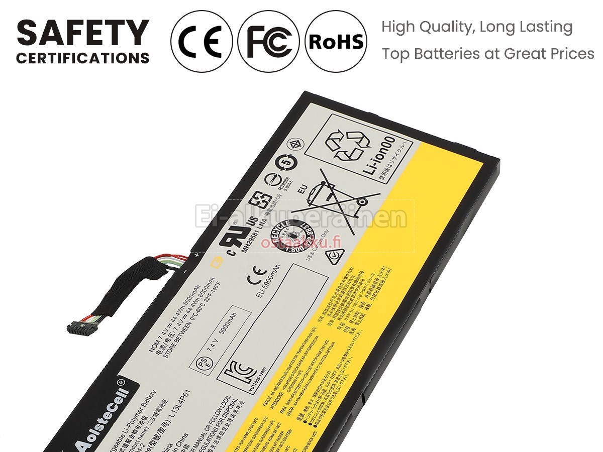 Varaenergian akku uusi Lenovo L13S4P61 valmistetaan hienoimmista solujen ja komponentteja. Lenovo L13S4P61 akku säädetään in abc.com hyväksytyn UN38.3, RCM, CE, UL, ROHS, ISO9001/ISO9002 ja muiden kansainvälisten sertifiointia. Jotta voidaan minimoida mahdollinen turvallisuusriski ja varmistaa hyvän käyttäjäkokemuksen, tarjotaan erilaisia suojatoimia Lenovo L13S4P61 Kannettavani akku kuten lämpösuojaus, virtapiirin suojaus, ylijännitesuojaus, laitteiston suojaus ja kynnyksen lähtövirran.