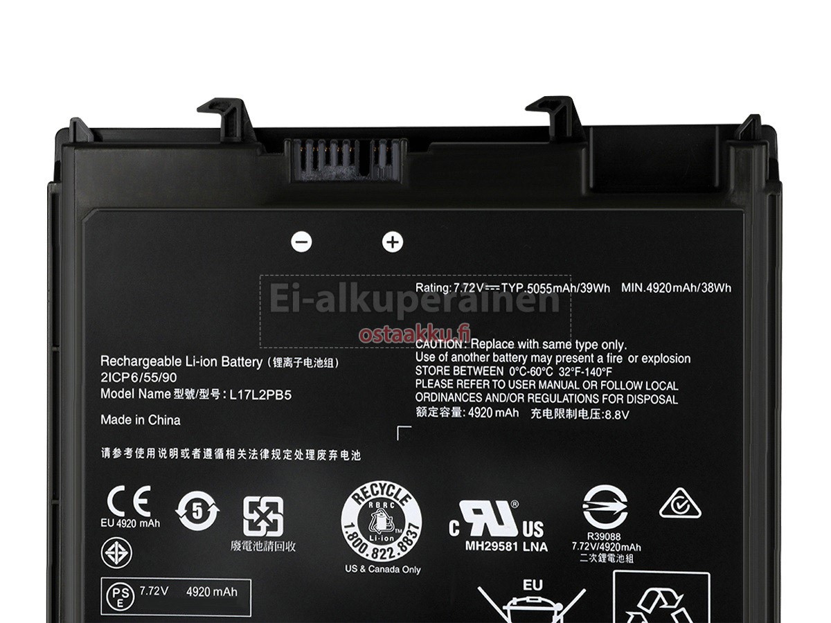 Ei ole suositeltavaa irrottaa akku, jotta voimme jatkaa toimintaansa ja et menetä tietoja äkillisen sähkökatkoksen. Jos haluat poistaa, on suositeltavaa pakata Lenovo L17C2PB4 akun muovilla ja laita se kuivassa, viileässä paikassa, ja muista käyttää ja ladata akku vähintään kerran kuukaudessa, jotta vältetään aktiivisuuden menetystä.