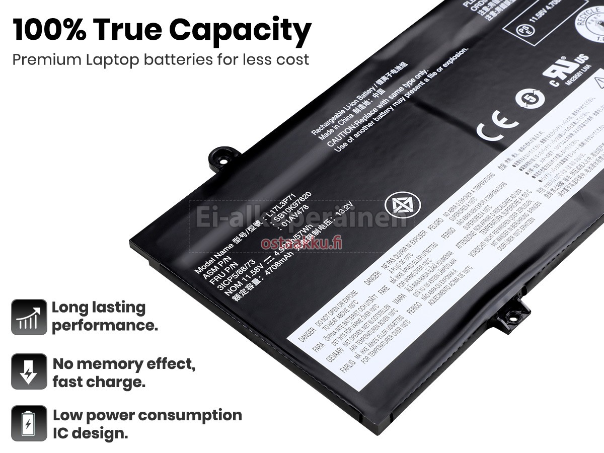 Vaihdettava akku Lenovo L17M3P71 on uusi. Ehdottomasti ei myydä käytettyjä akku tai uudistettu. Akut ovat valmistettu parhaista solujen ja komponentteja.