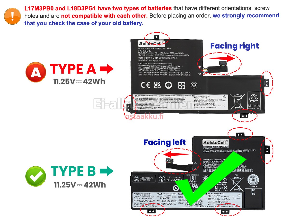 Vaihdettava akku Lenovo L17M3PB0 on uusi. Ehdottomasti ei myydä käytettyjä akku tai uudistettu. Akut ovat valmistettu parhaista solujen ja komponentteja.