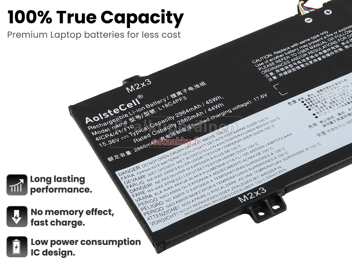 Vaihdettava akku Lenovo L18C4PF3 on uusi. Ehdottomasti ei myydä käytettyjä akku tai uudistettu. Akut ovat valmistettu parhaista solujen ja komponentteja.