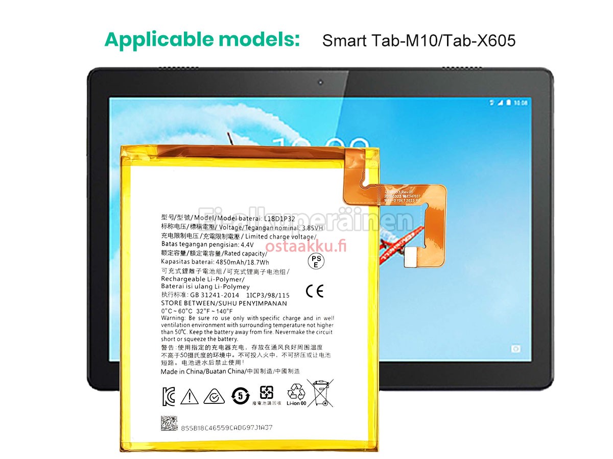Vaihdettava akku Lenovo L18D1P32 on uusi. Ehdottomasti ei myydä käytettyjä akku tai uudistettu. Akut ovat valmistettu parhaista solujen ja komponentteja.