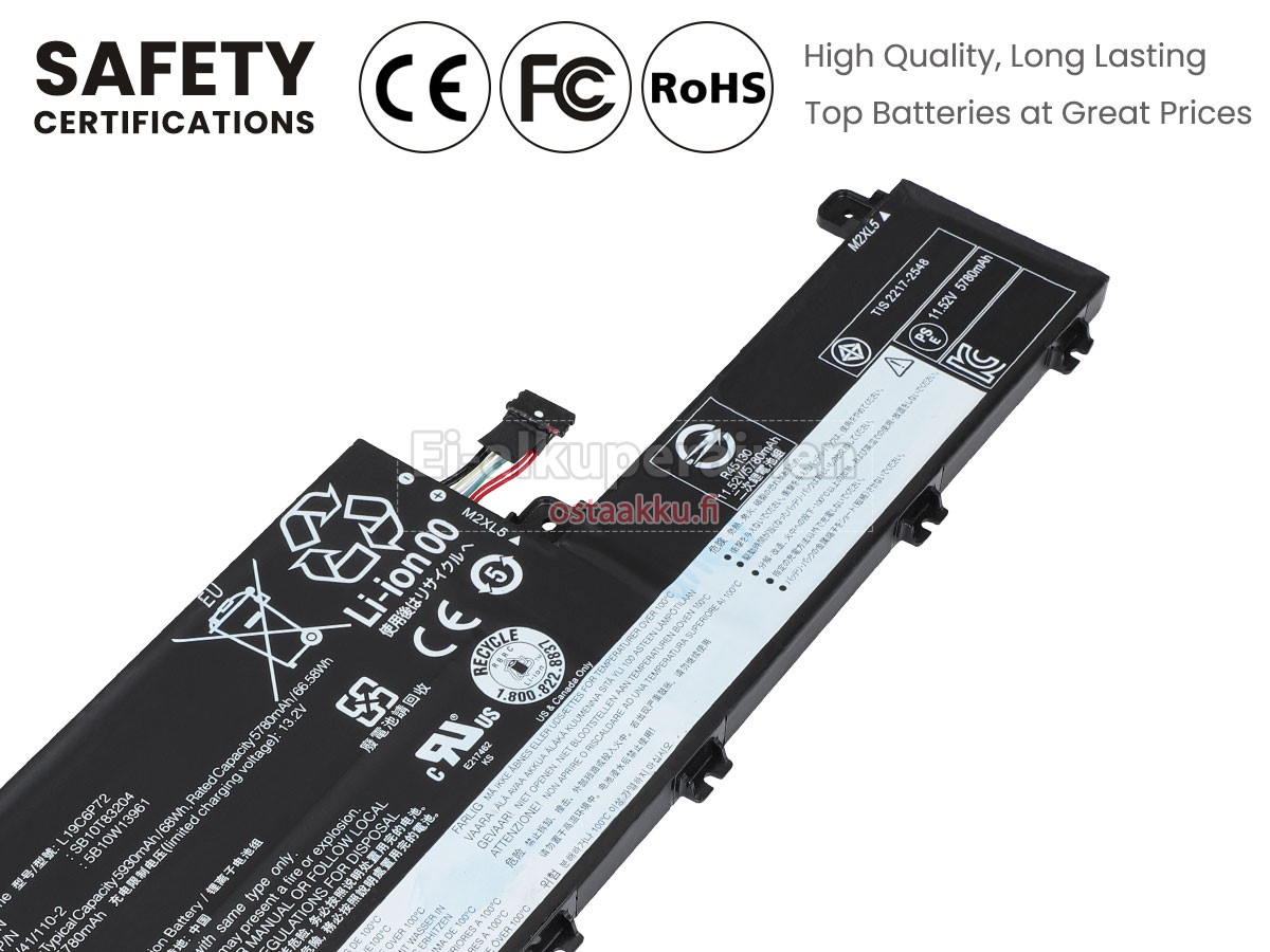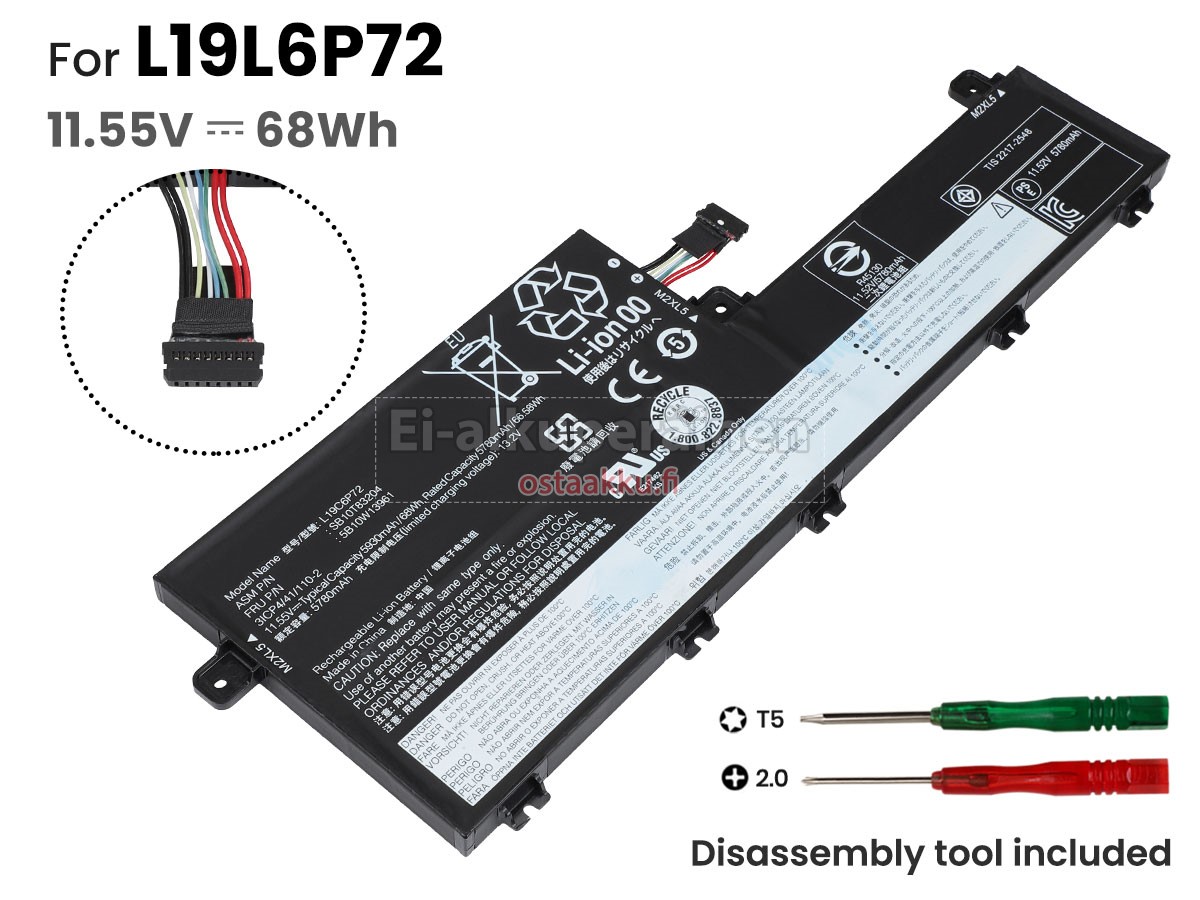 Vaihdettava akku Lenovo L19C6P72 on uusi. Ehdottomasti ei myydä käytettyjä akku tai uudistettu. Akut ovat valmistettu parhaista solujen ja komponentteja.