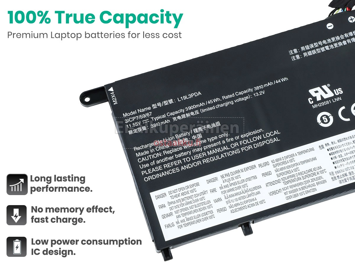 Vaihdettava akku Lenovo L19L3PDA on uusi. Ehdottomasti ei myydä käytettyjä akku tai uudistettu. Akut ovat valmistettu parhaista solujen ja komponentteja.