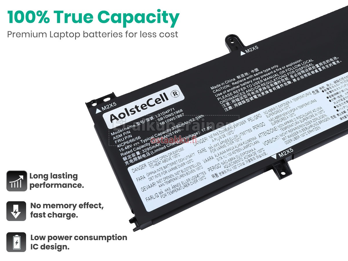 Vaihdettava akku Lenovo L21D4P71 on uusi. Ehdottomasti ei myydä käytettyjä akku tai uudistettu. Akut ovat valmistettu parhaista solujen ja komponentteja.